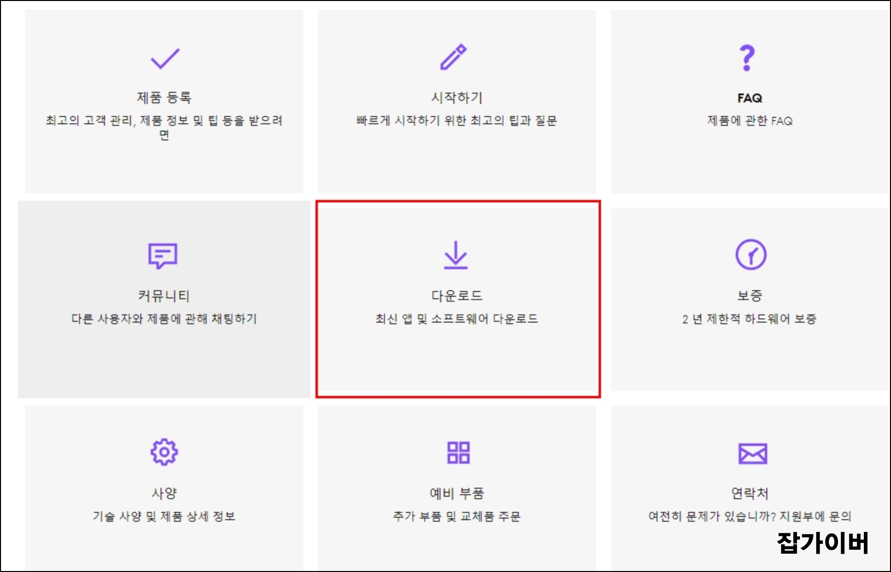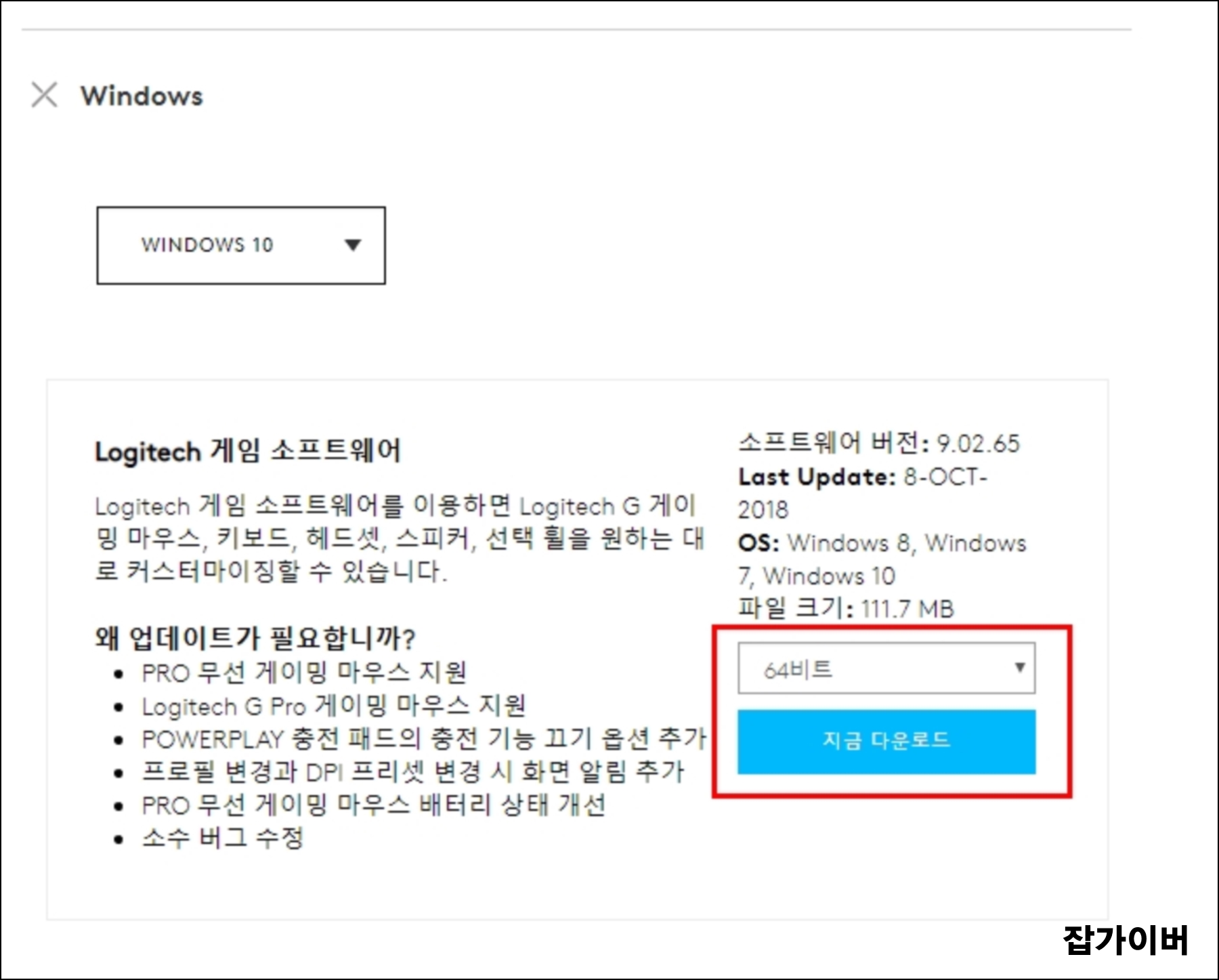 마우스 드라이버를 다운로드 받기 위해서는 가운데 "다운로드" 선택합니다.