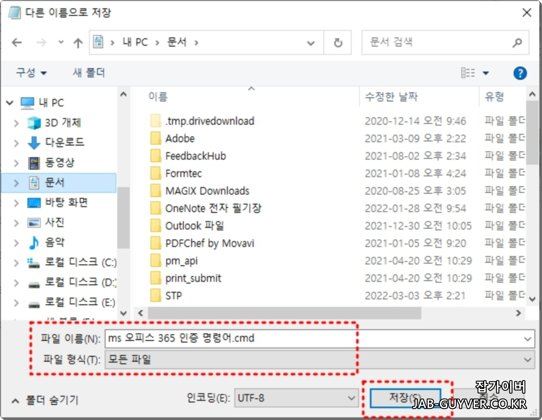 - 저장 시 파일형식으로 CMD로 변경 후 저장합니다.
