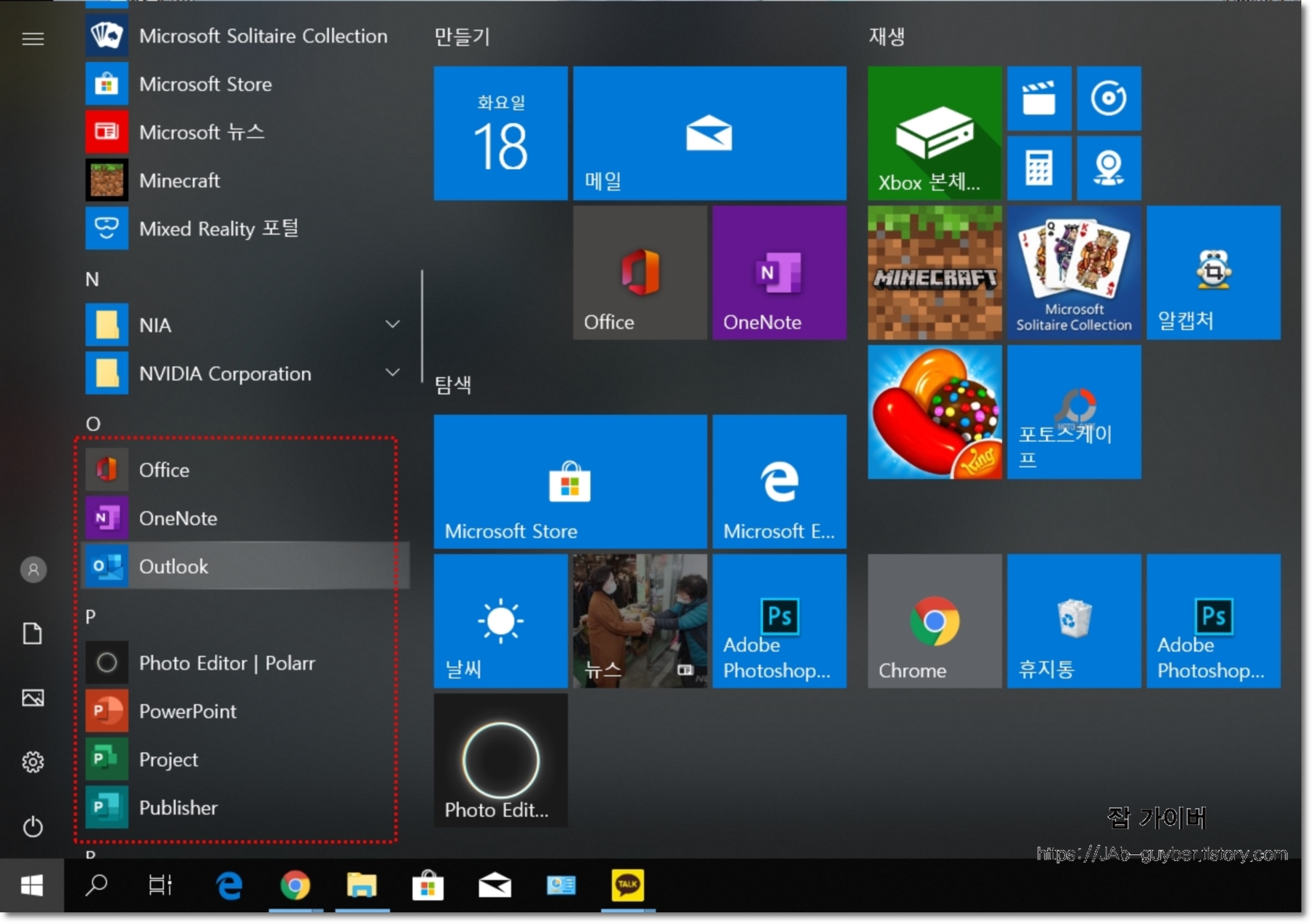 이후 시작 버튼을 눌러보면 오피스365 프로그램이 설치된 것은 볼 수 있습니다.