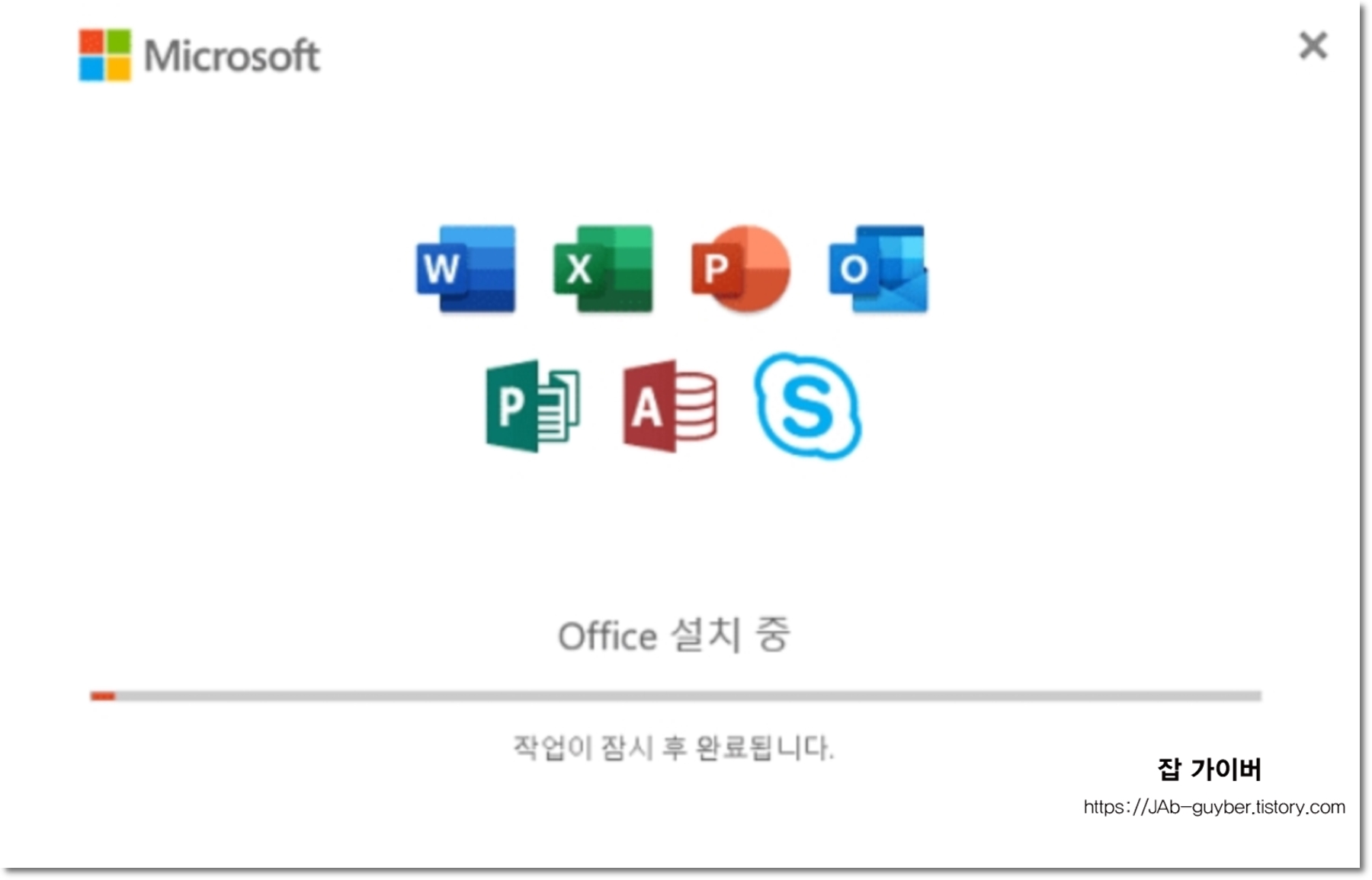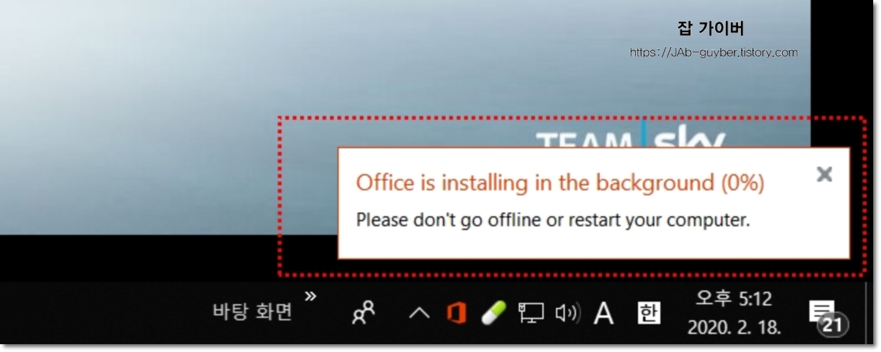 오피스 365 설치 준비가 완료되면 바로 이어서 설치가 진행됩니다.