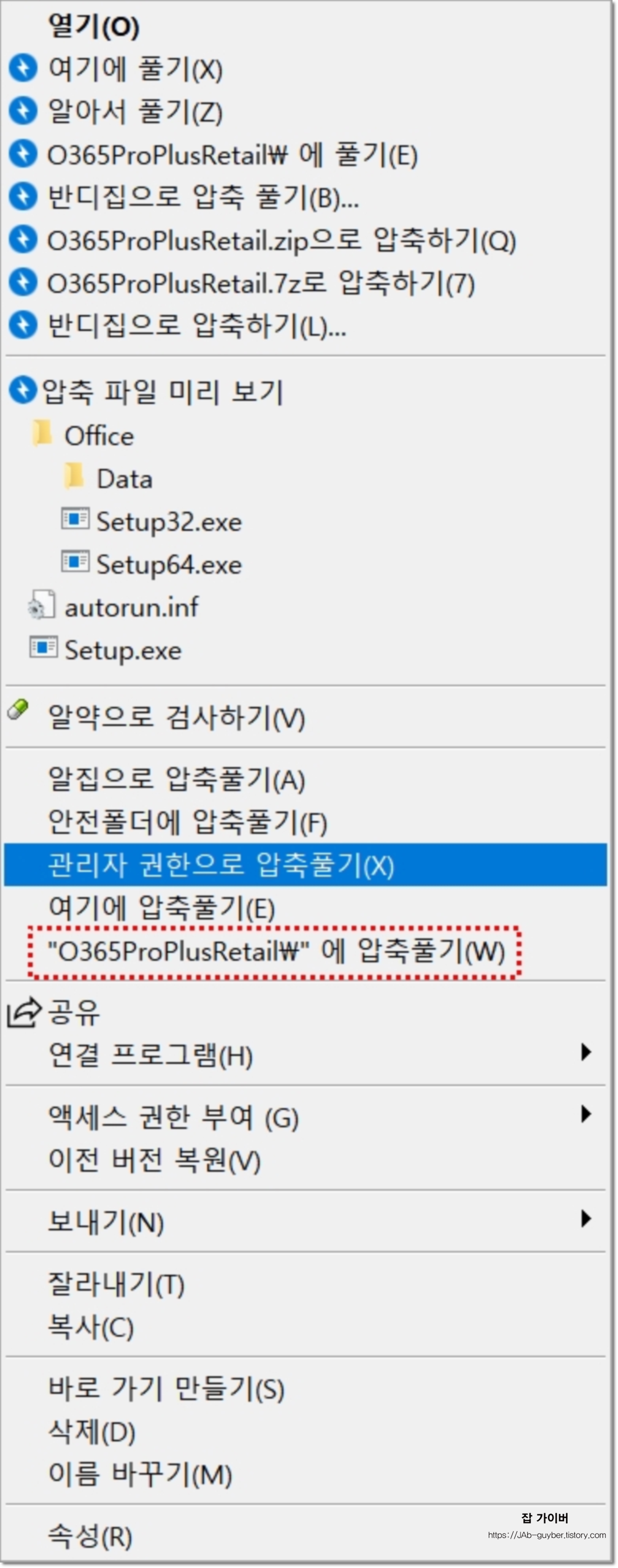압축을 해제하면 바로 SETUP.EXE 파일로 자동 설치가 가능하며