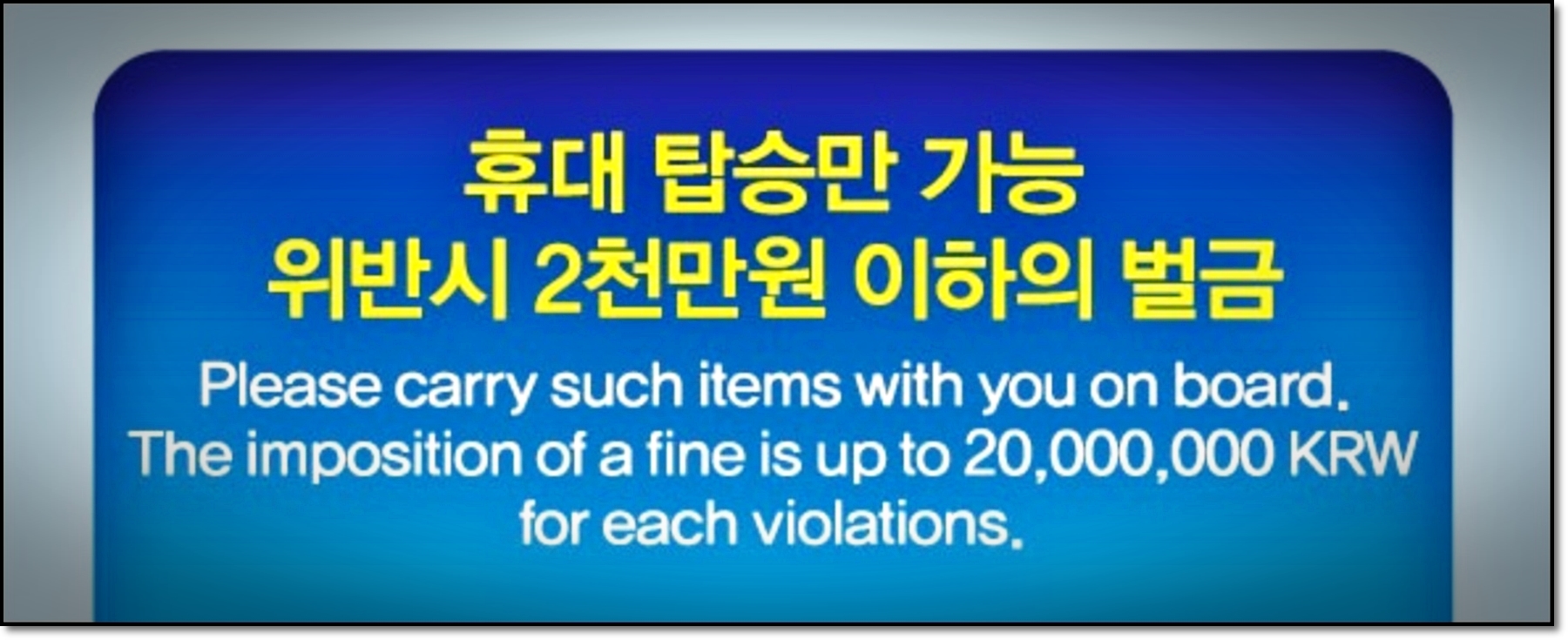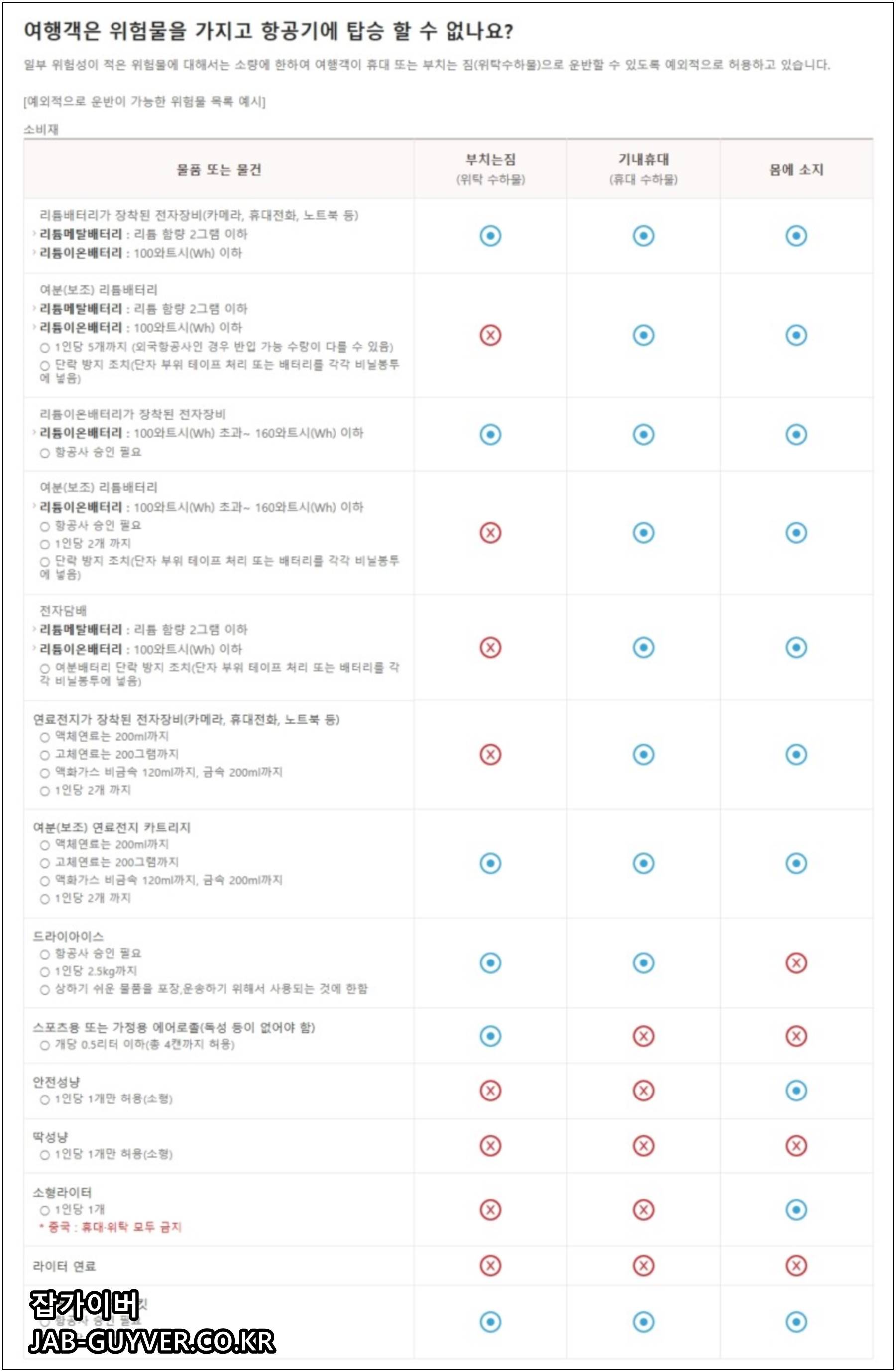 즉 수화물로는 가지고 갈 수 없으며 기내용으로 가지고 타면 상관은 없습니다.