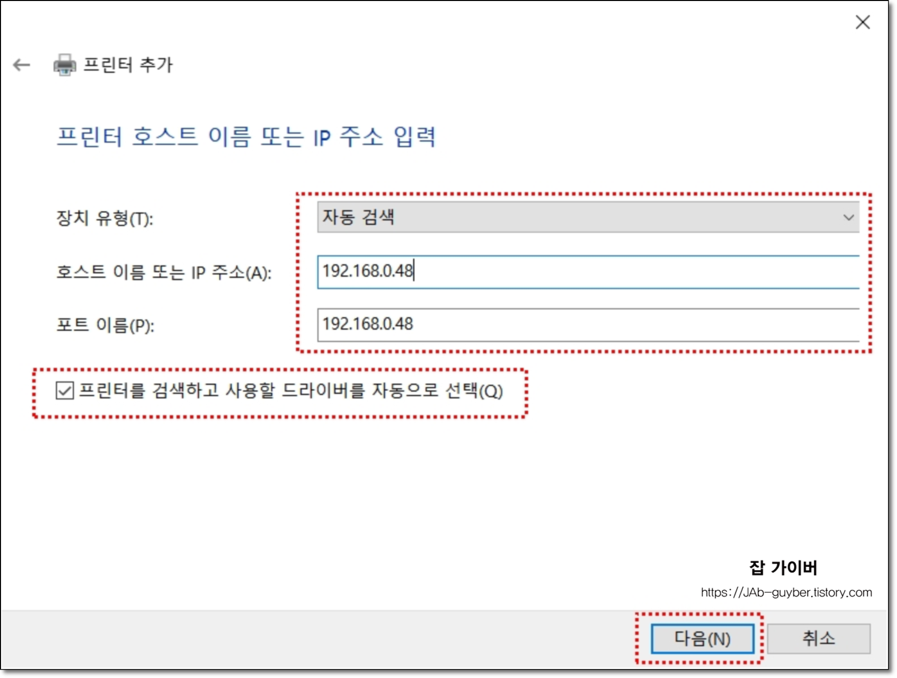 윈도우10 네트워크 프린터 연결 공유설정, IP로 빠르게 잡는 방법