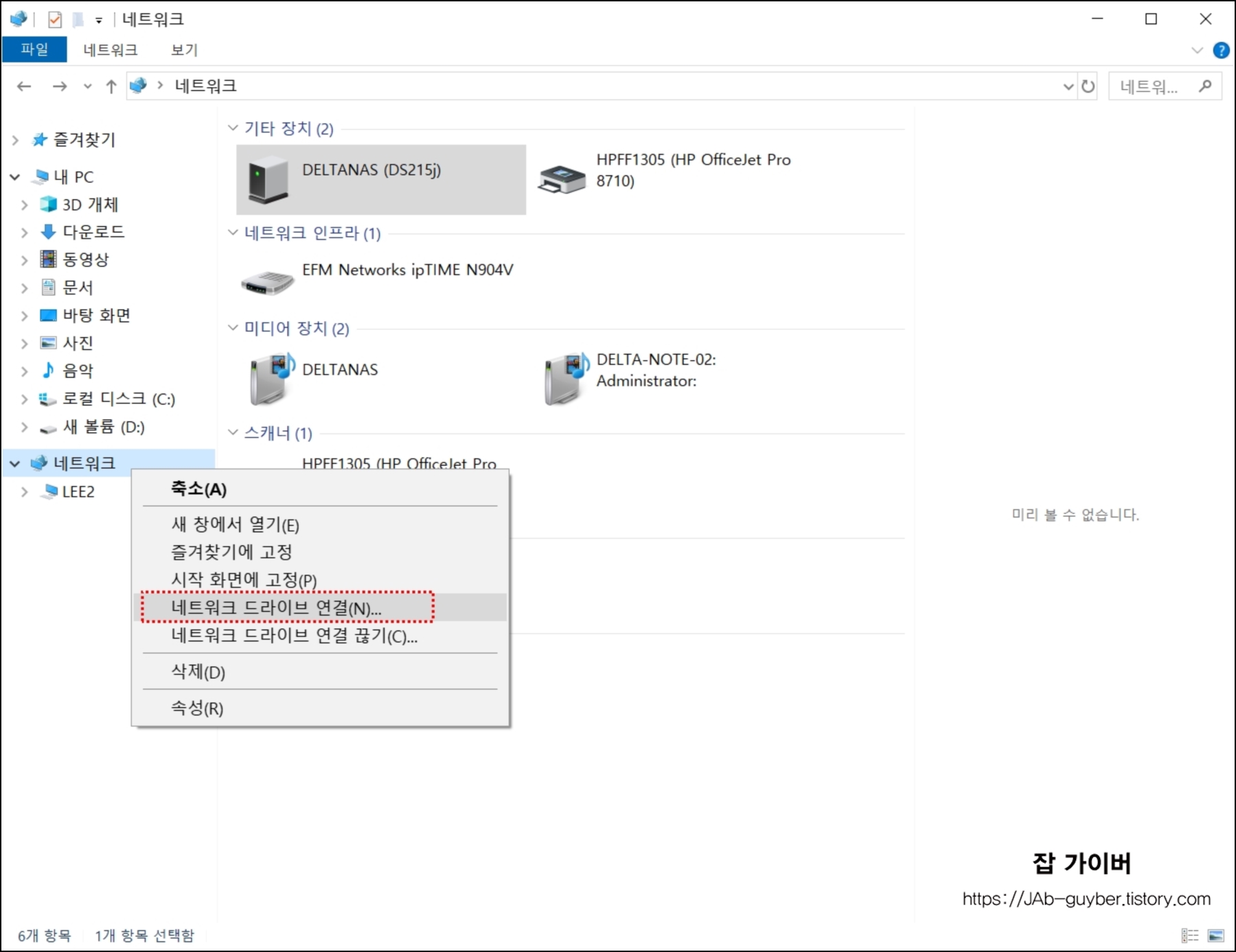 네트워크 공유 폴더가 보이지 않는 경우, 네트워크 드라이브를 수동으로 연결해 보세요.