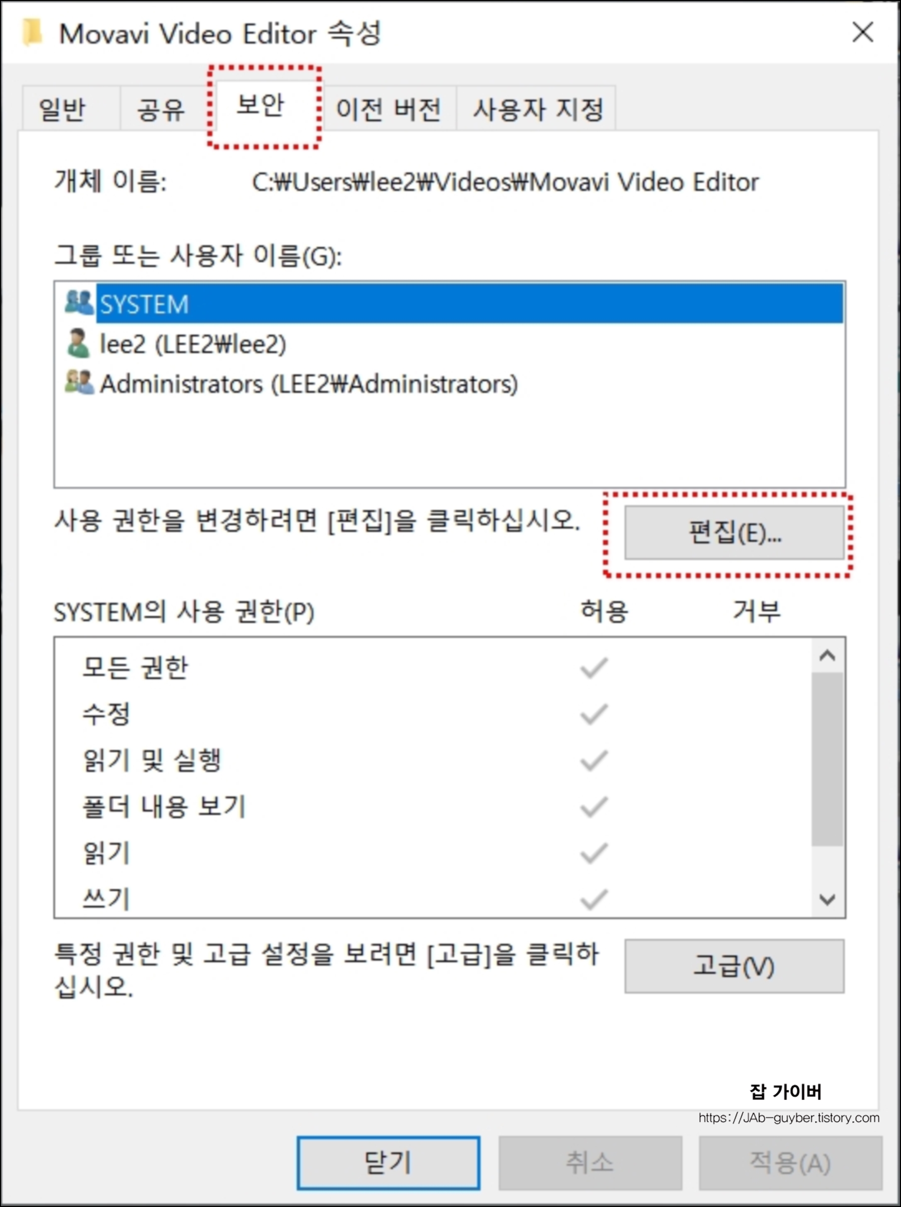 - 폴더 읽기 쓰기 권한 설정