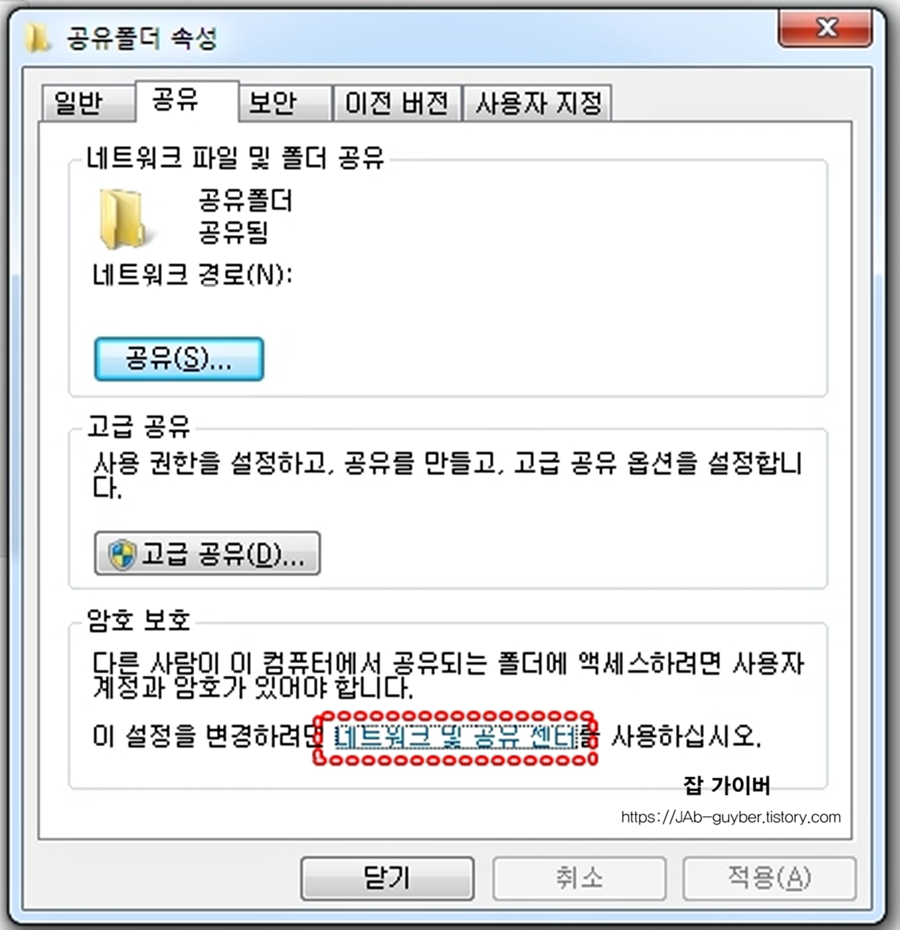 윈도우7 네트워크 공유폴더 연결 및 암호 설정 해제