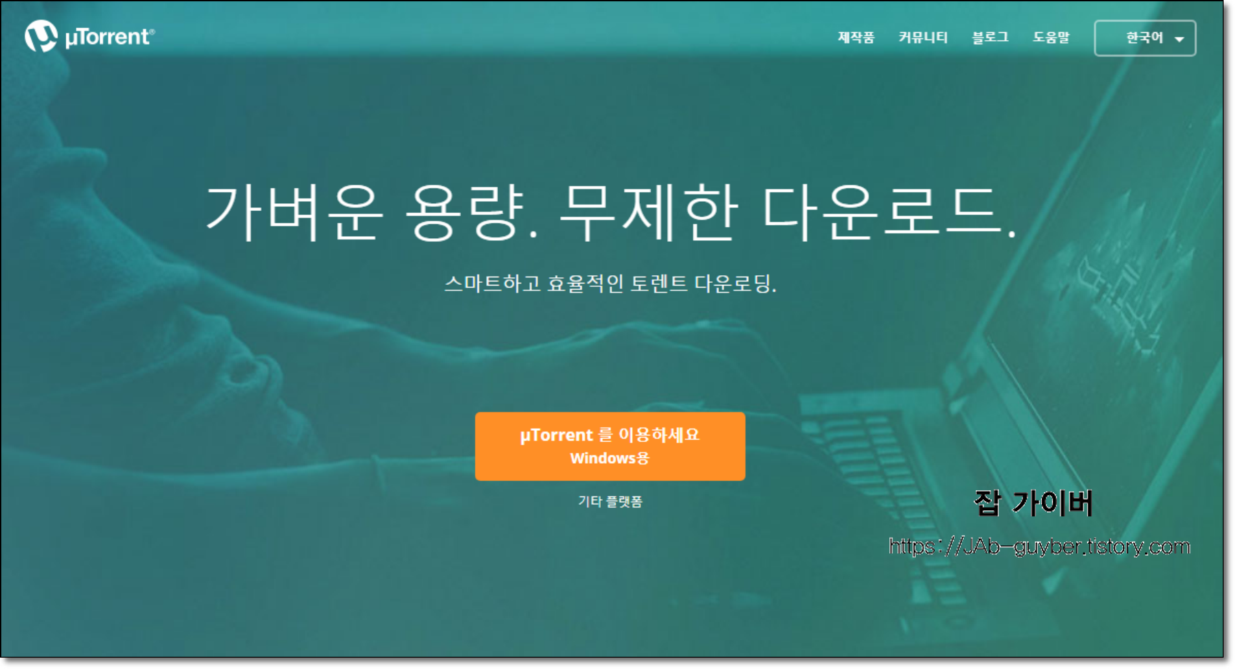 uTorrent 사이트에 접속하면 기본적으로 "토렌트 한글판 윈도우 버전"을 다운로드 할 수 있습니다.