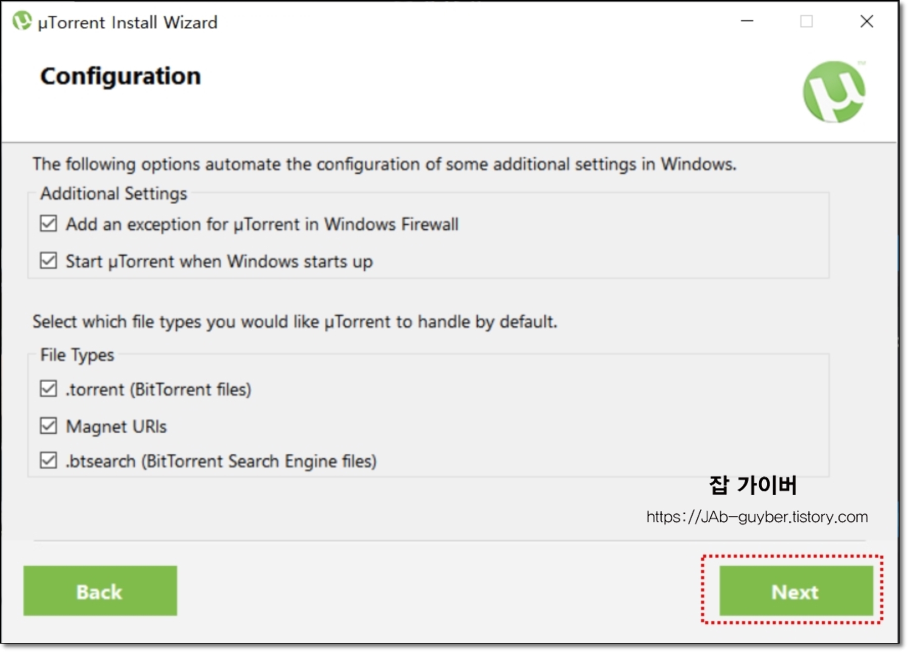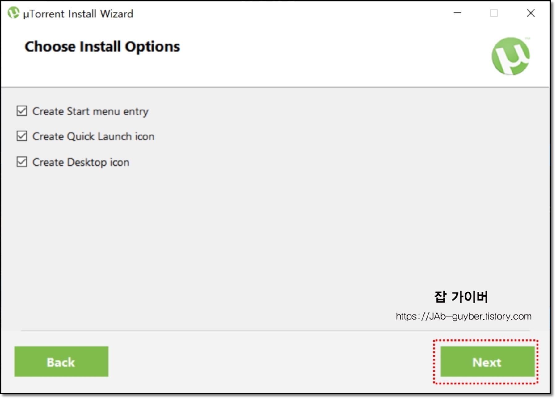 설치시 바탕화면에 아이콘을 만들것인지 토렌트파일을 해당프로그램 연동할것인지등은 기본값으로 하는것을 추천합니다.