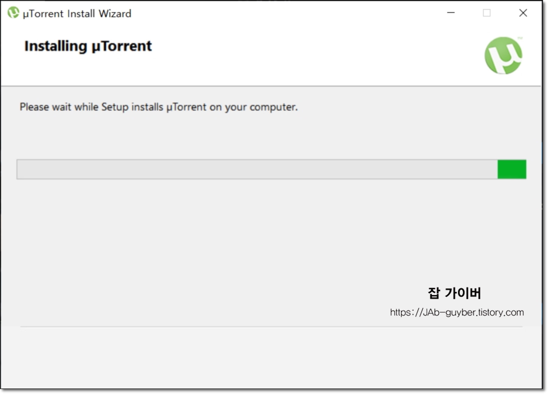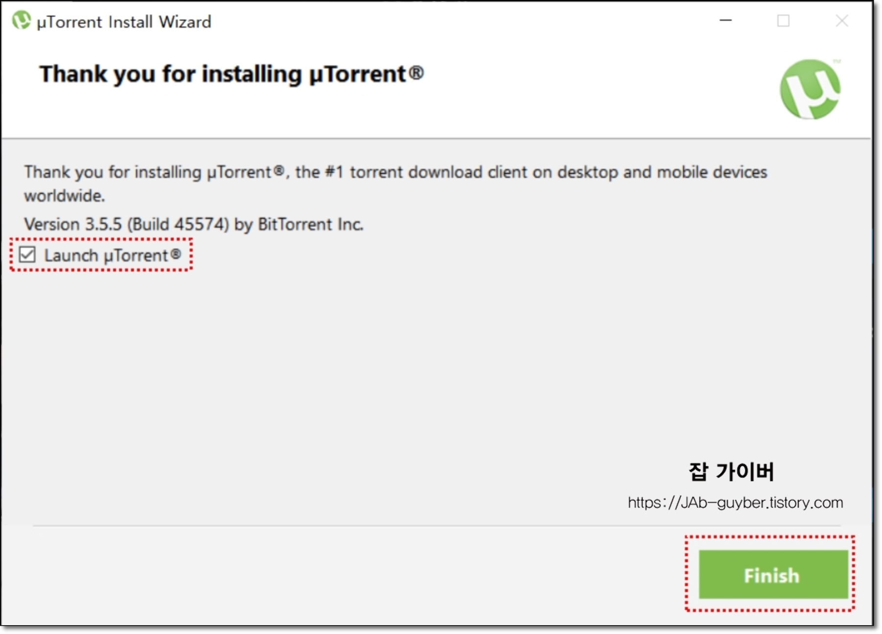 설치가 완료되면 Launch uTorrent 를 체크 후 마침을 누르면 자동으로 토렌트가 실행됩니다.