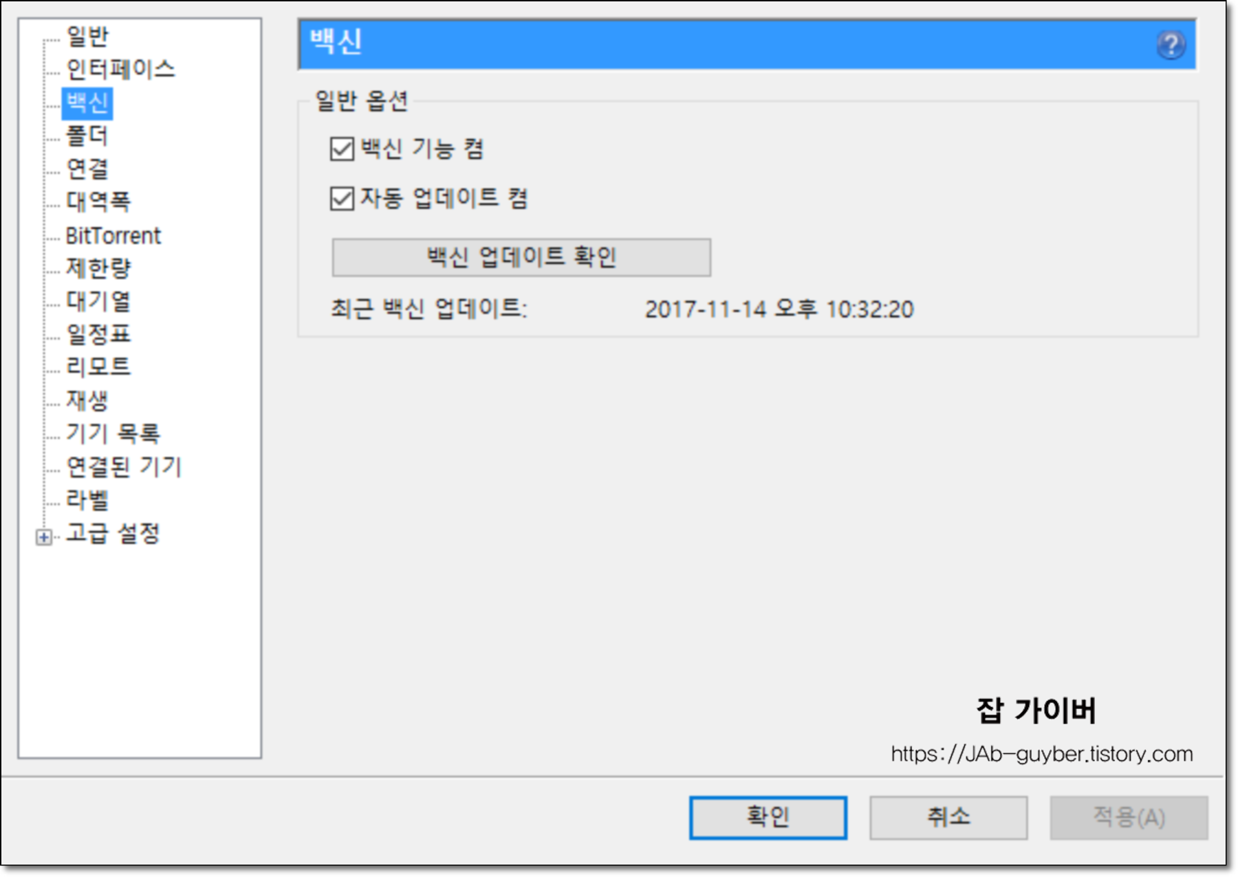 백신으로 이동 후 바이러스 보안을 위해 "백신기능 및 업데이트 기능"을 활성화하세요.