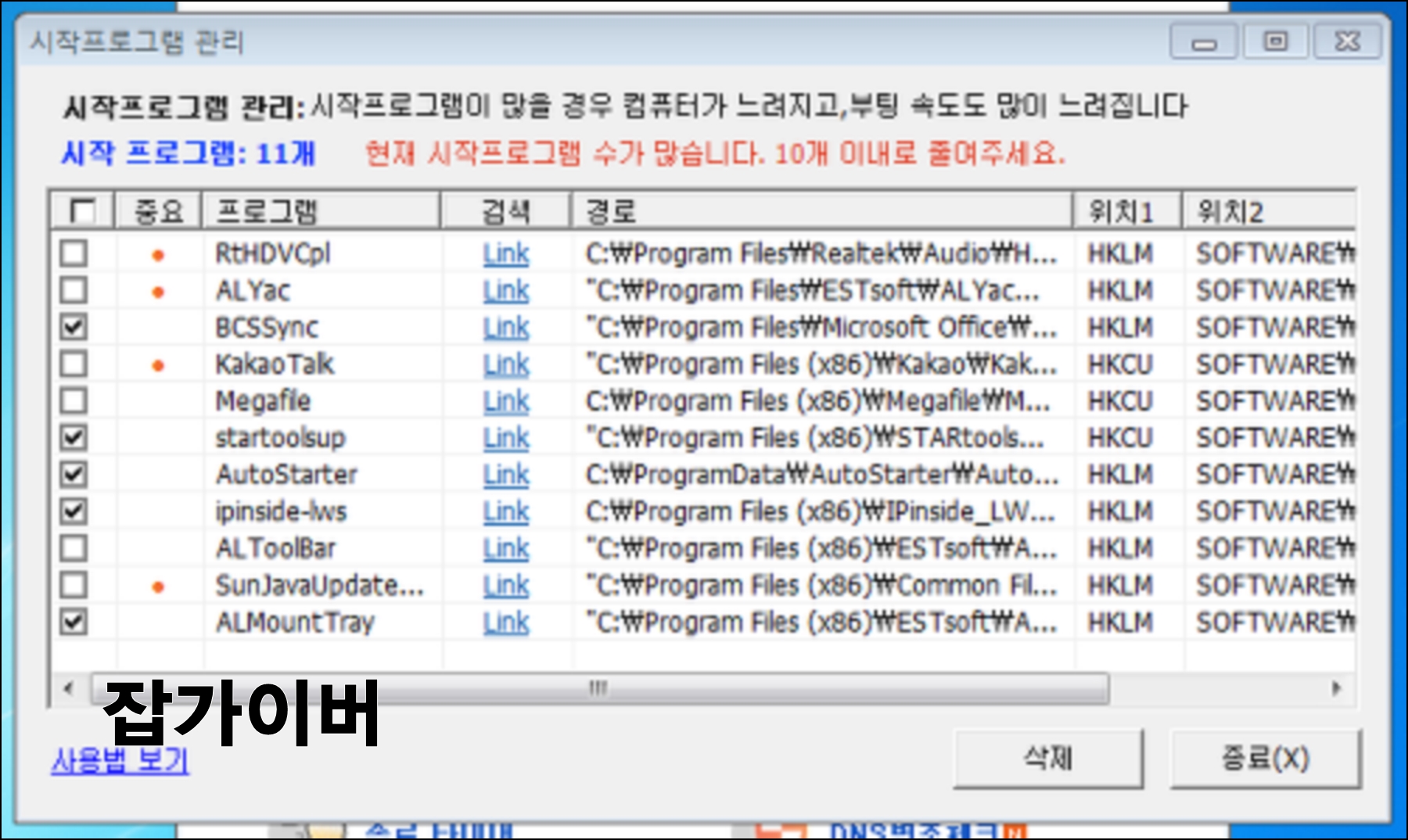 - 시작프로그램 관리