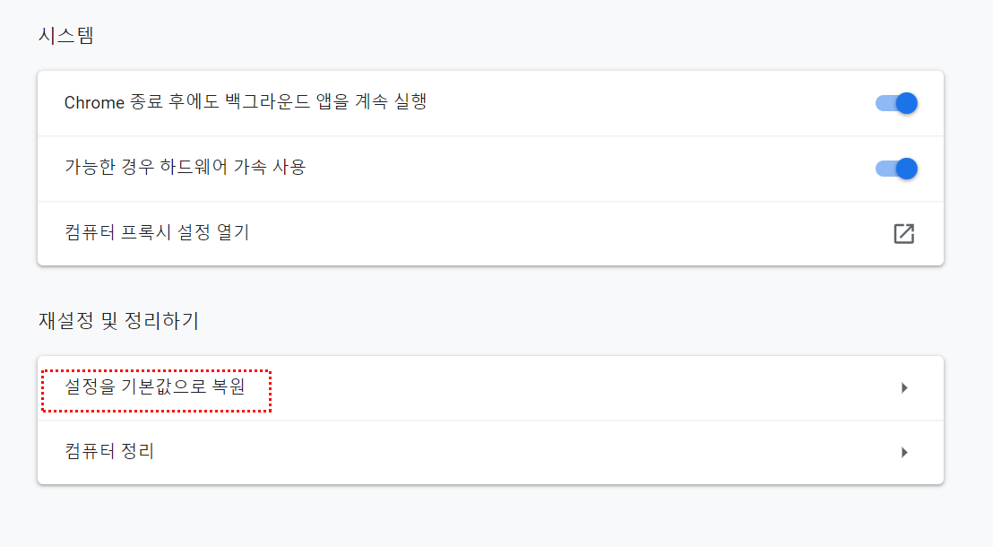 구글 크롬 브라우저 초기화