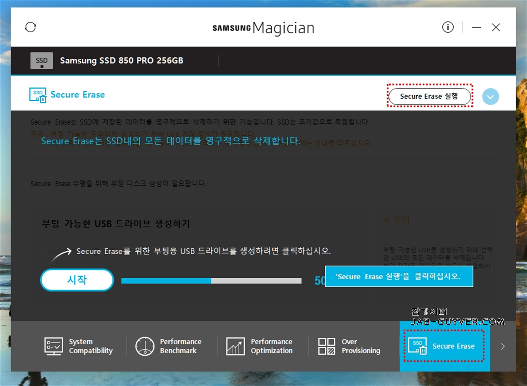 Secure Erase기능을 사용하면 SSD 내의 모든 데이터를 영구적으로 삭제할 수 있습니다.