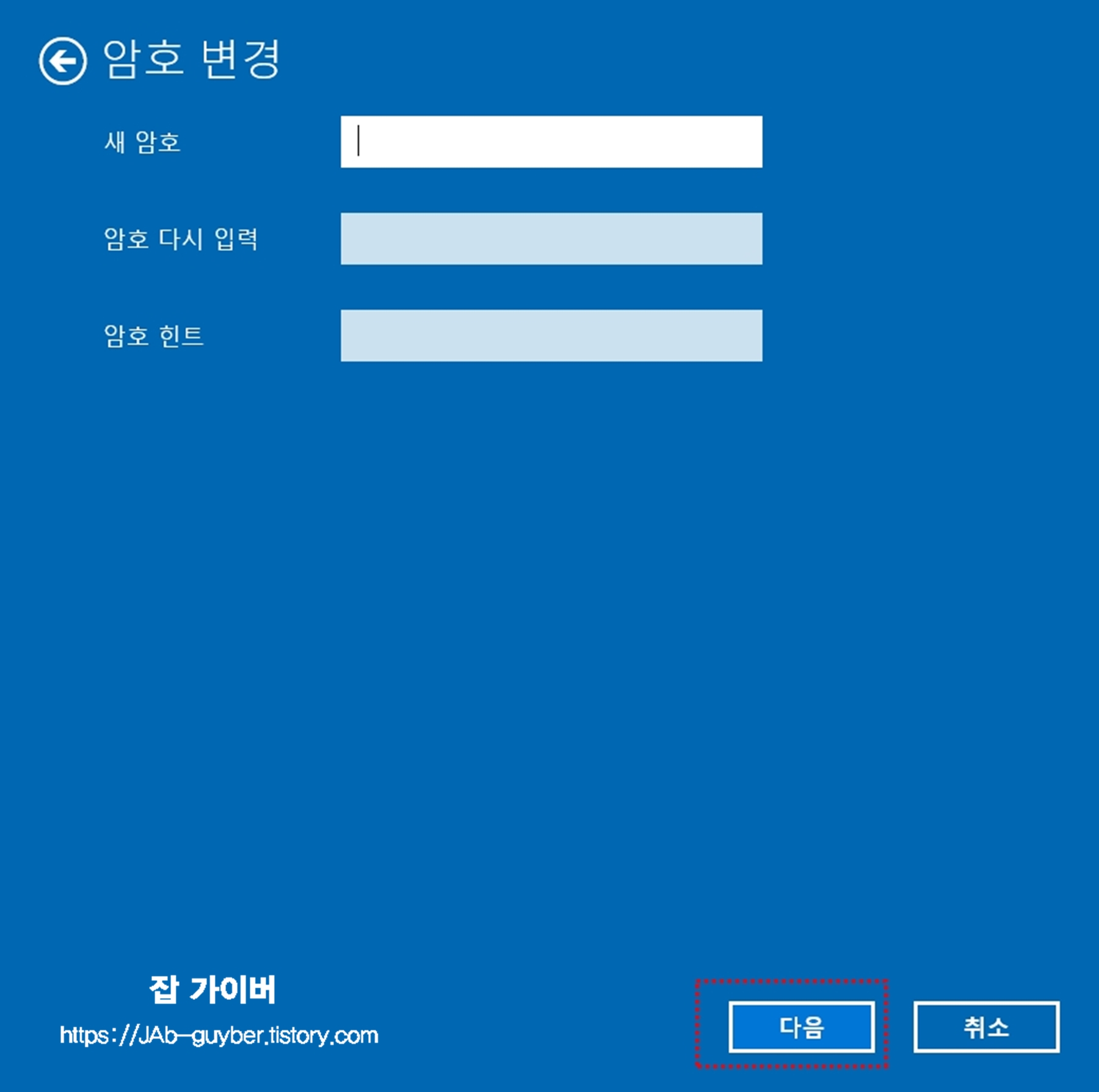 - 암호 : 사용자 계정에 암호가 없을경우 암호를 설정합니다.