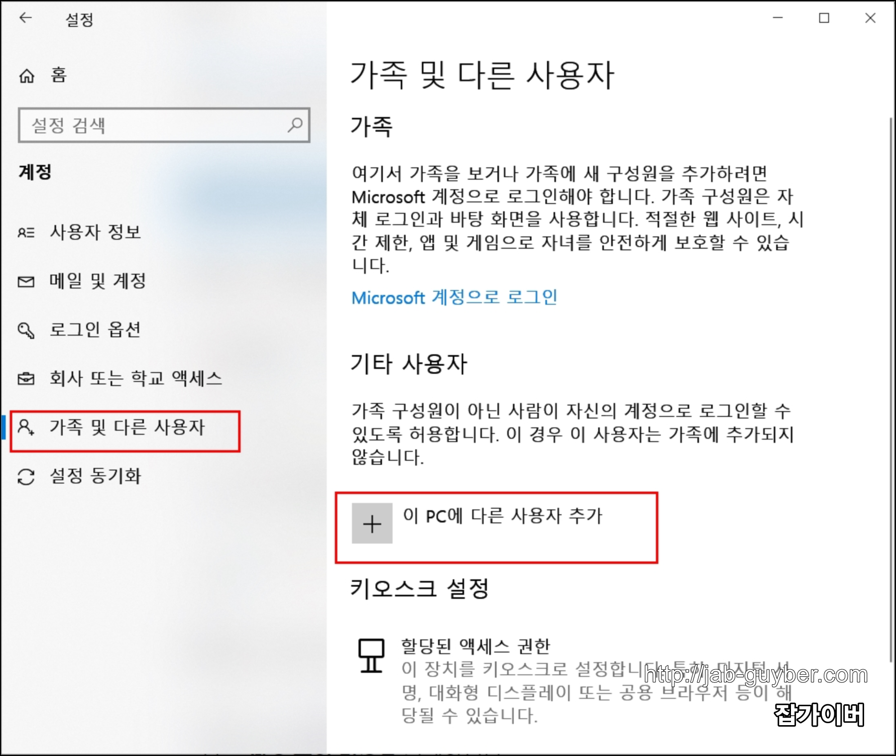 이를 통해 가족 구성원이 아닌 다른사람들도 사용할 수 있는 로그인 계정을 추가할 수 있습니다.