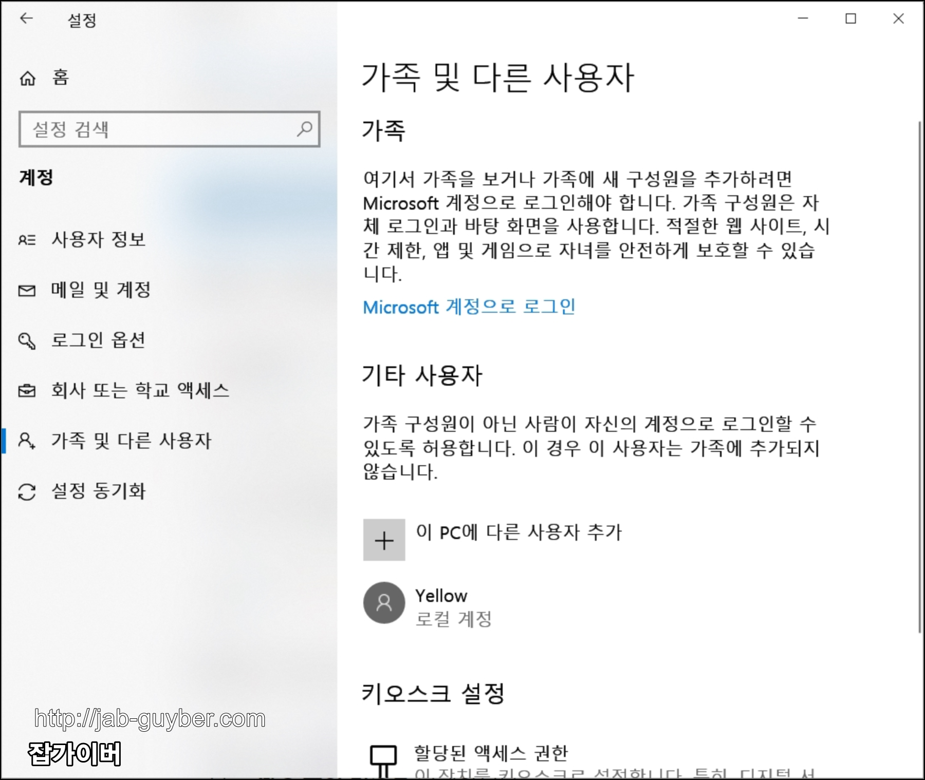 - 참고 : 윈도우10 사용자계정 로컬 게스트계정 추가 및 삭제방법