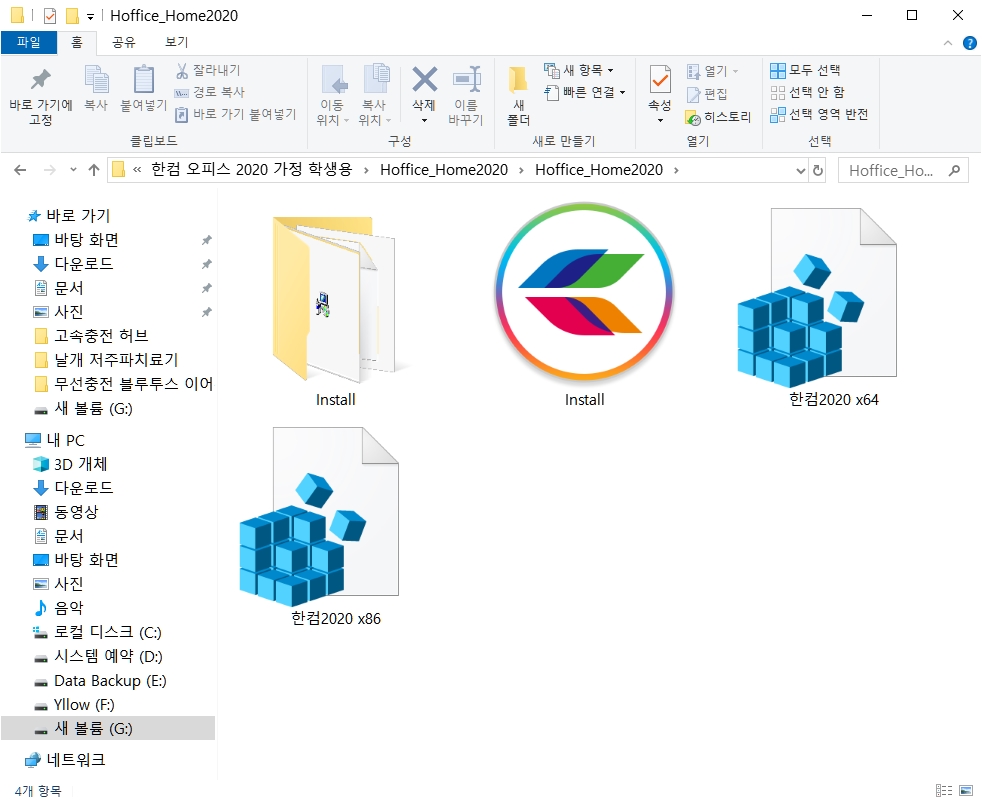 5. 설치 진행 및 완료되면 바탕 화면에 등록된 한컴오피스 2020을 실행합니다. (USB가 없거나 추가 설치는 다운로드용과 동일 방법으로 설치합니다.) |