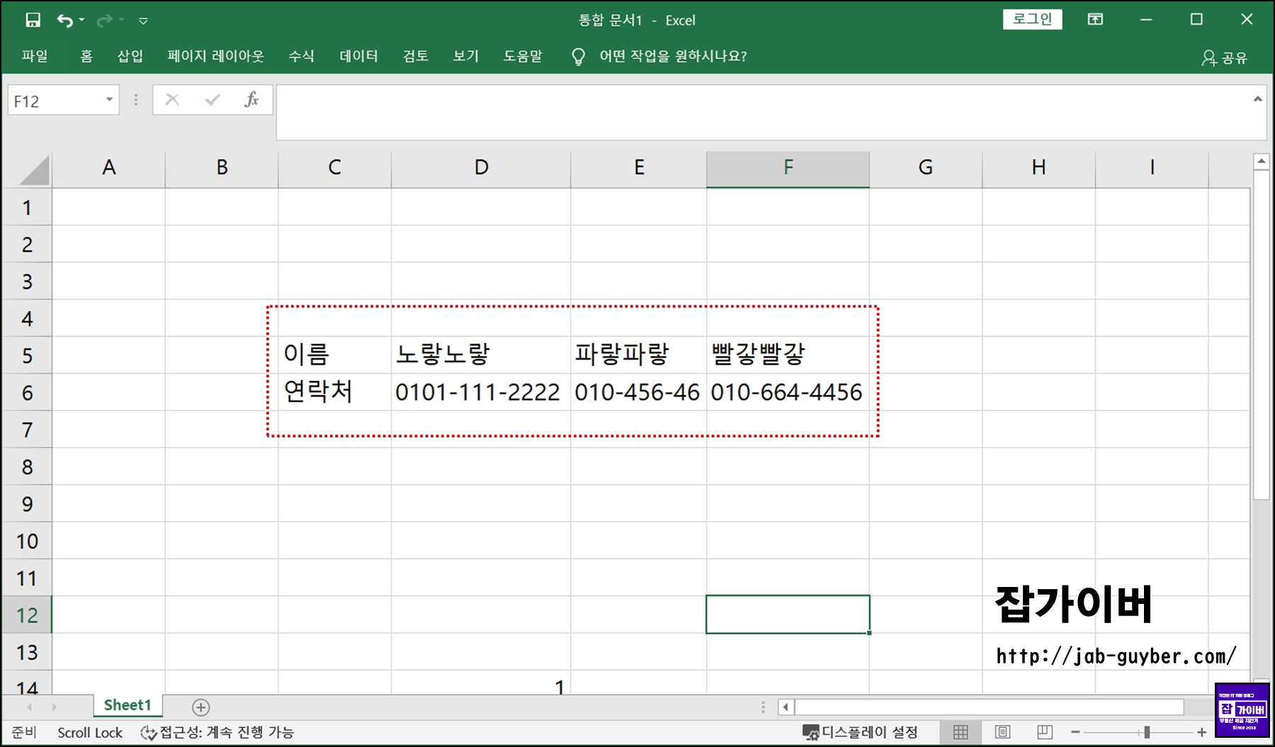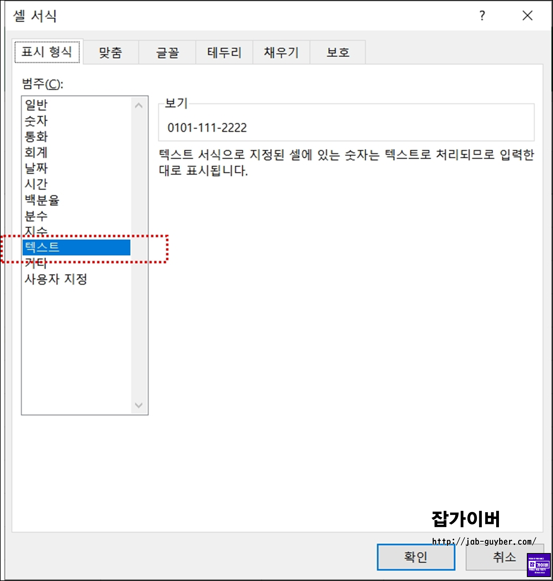 이렇게 설정하면 핸드폰 번호와 같이 앞자리 0이 중요한 경우에도 0이 표시됩니다.