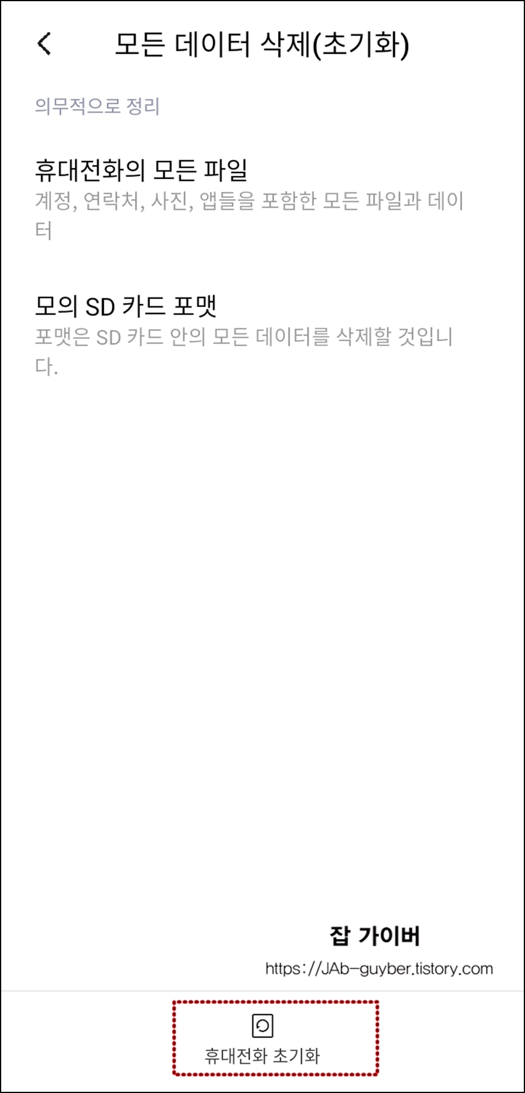 초기화 과정은 기기 모델에 따라 UI 위치가 살짝 다를 수 있지만 대부분 비슷합니다.