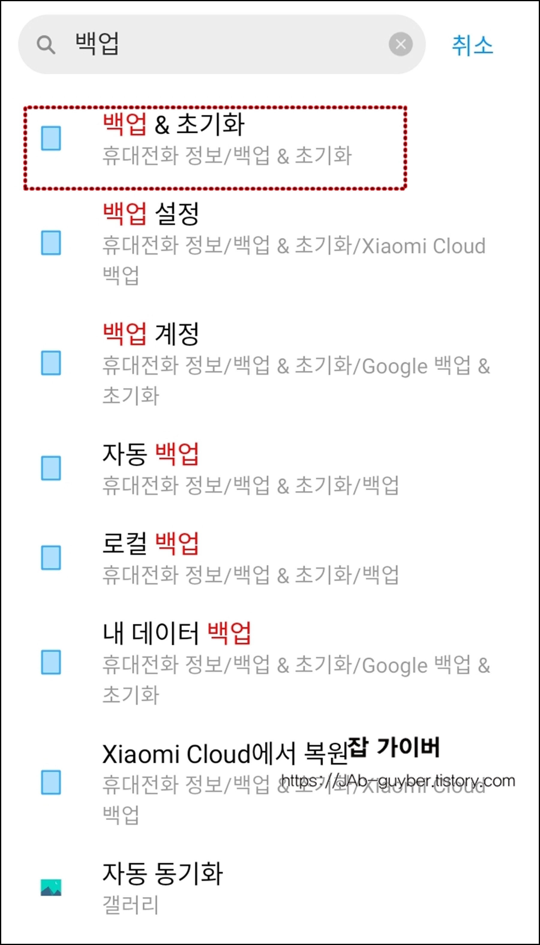 초기화는 모든 데이터를 지우는 작업이기 때문에, 진행 전에 백업은 필수입니다. 샤오미 MIUI에서는 비교적 간편하게 백업을 할 수 있는데요.