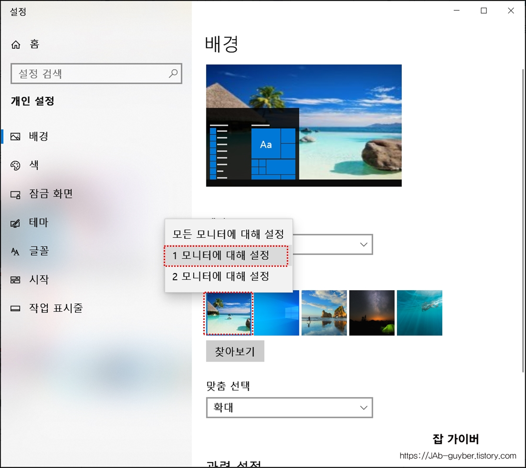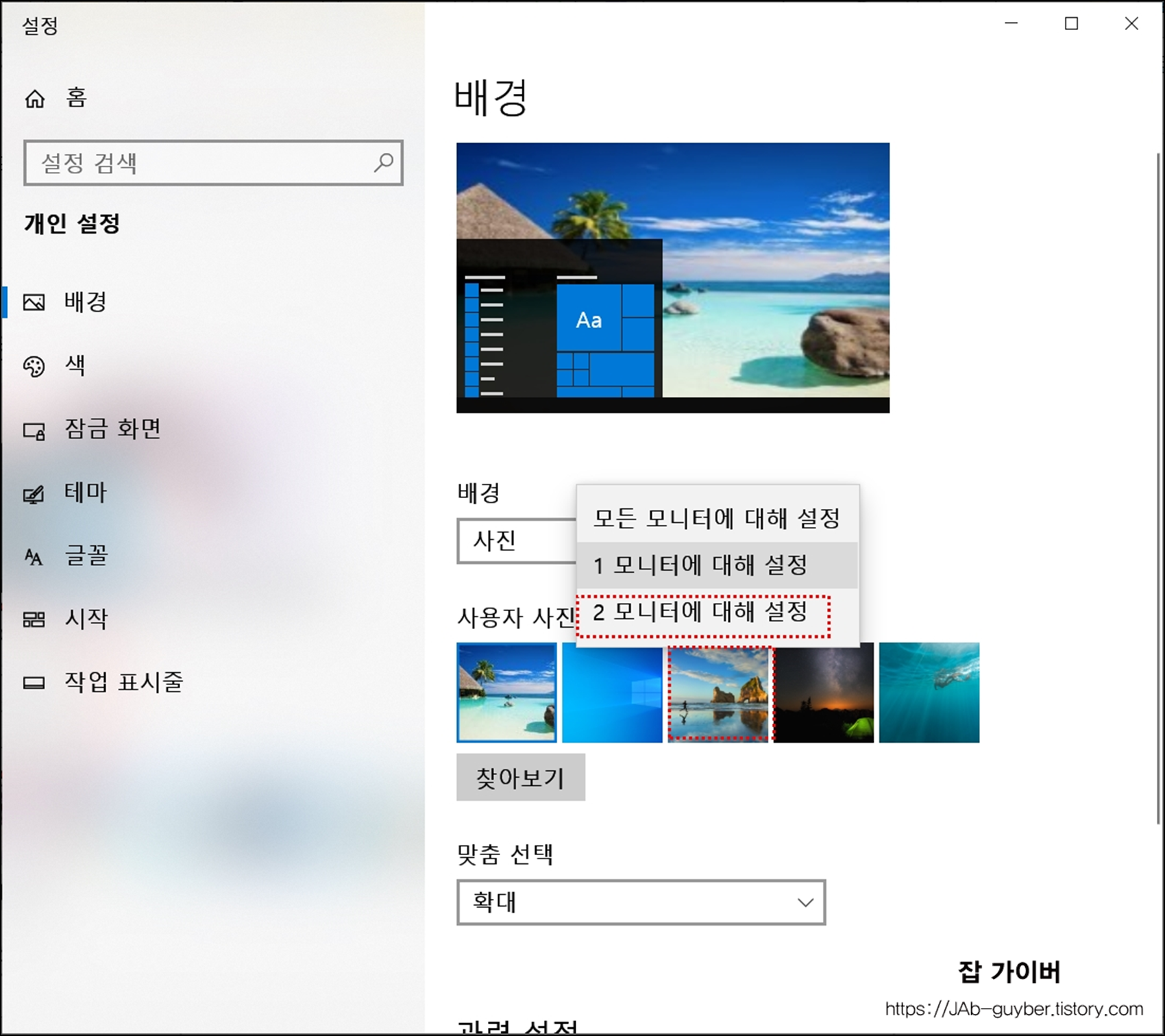 듀얼모니터 바탕화면 다르게 설정하기 - 윈도우10