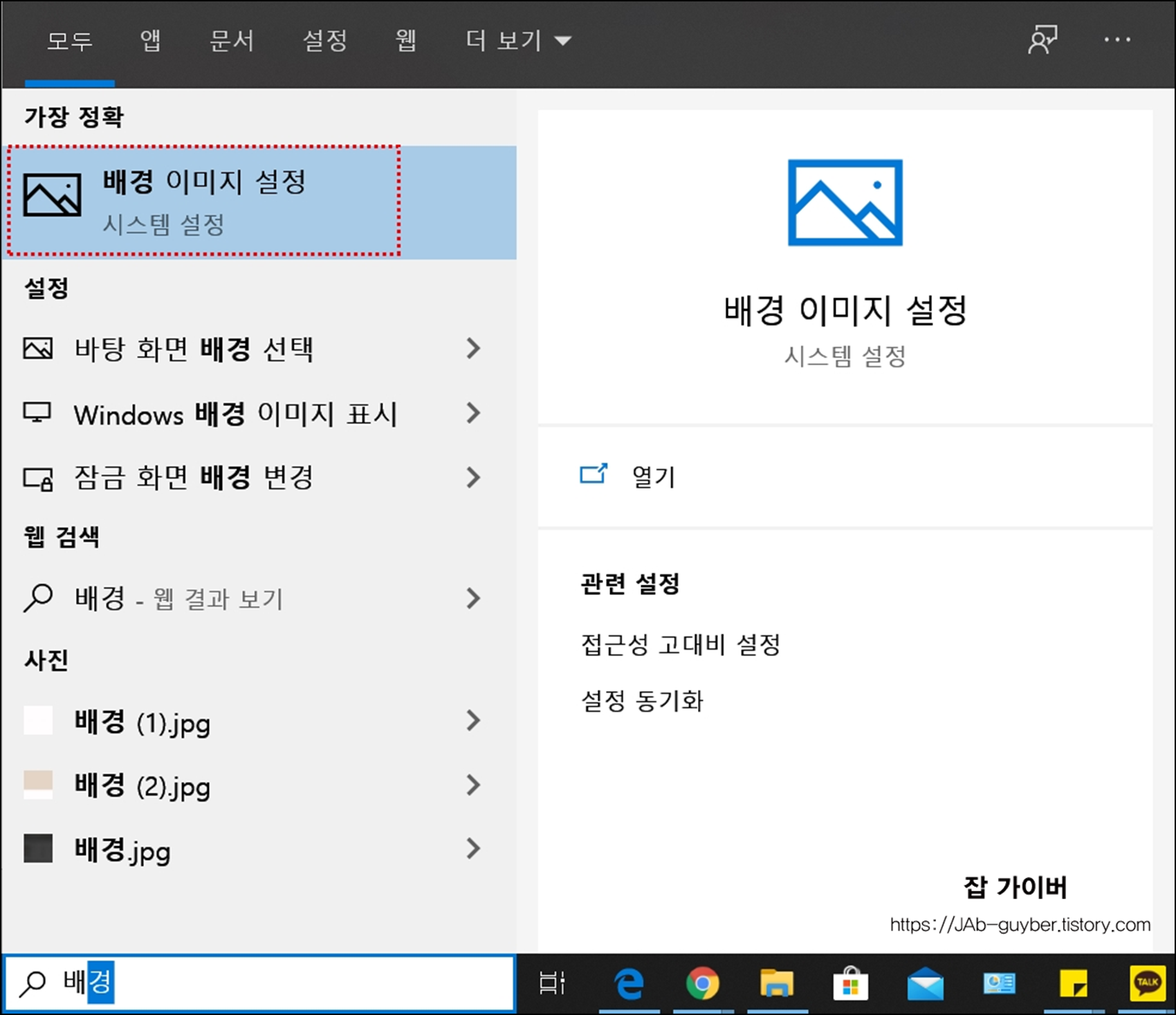 - 윈도우 키 검색 -> 배경 이미지 설정