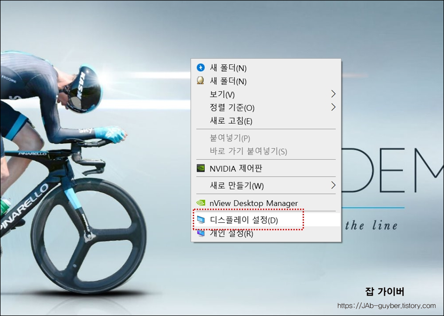 - 윈도우10 바탕화면 우클릭 -> 디스플레이 설정