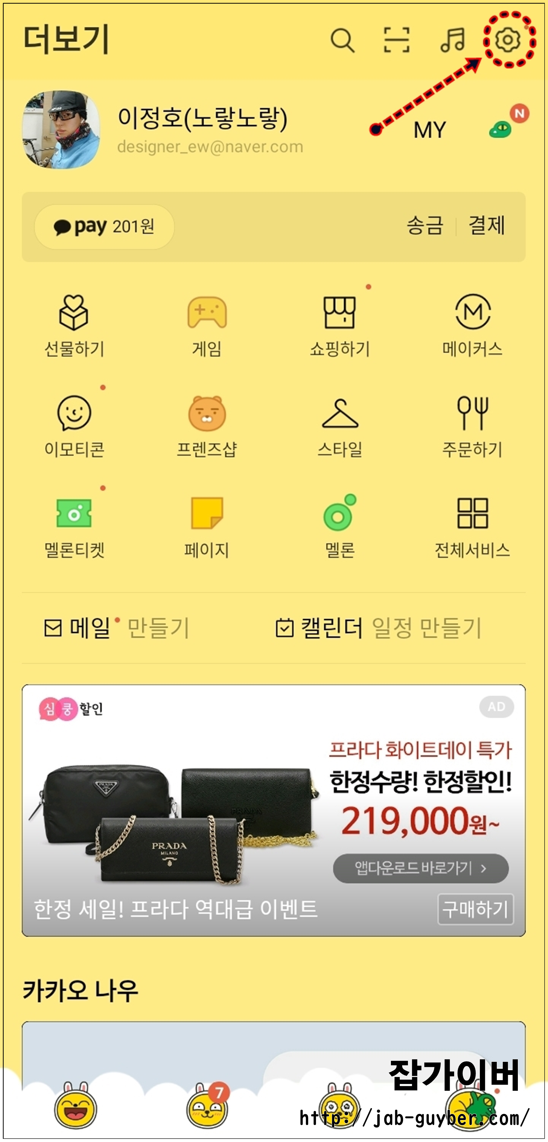 - 우측 상단의 "기어 마크"를 선택해서 "설정"으로 들어갑니다.