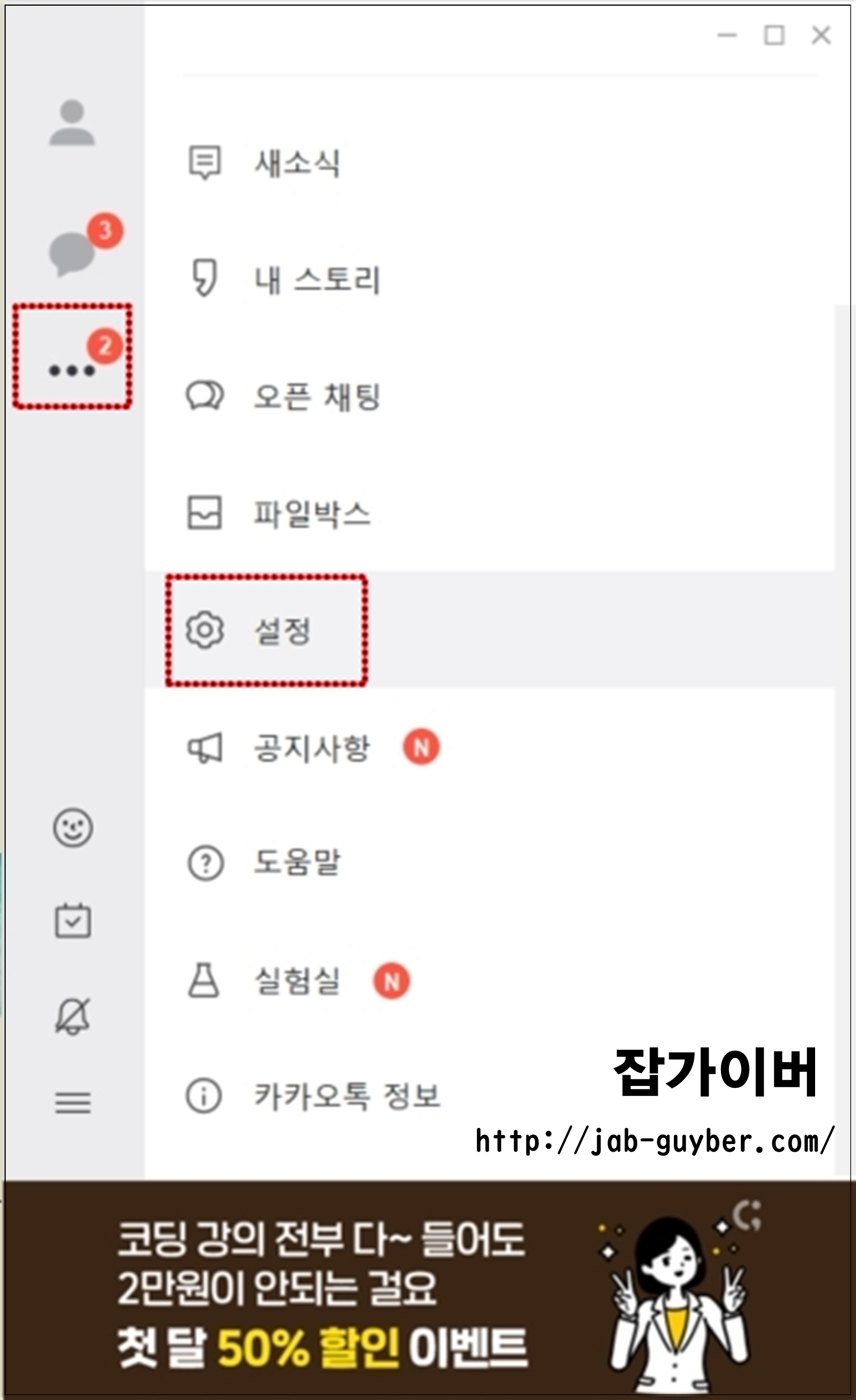두가지 방법중 편한 방법으로 카카오톡 설정으로 들어갑니다.