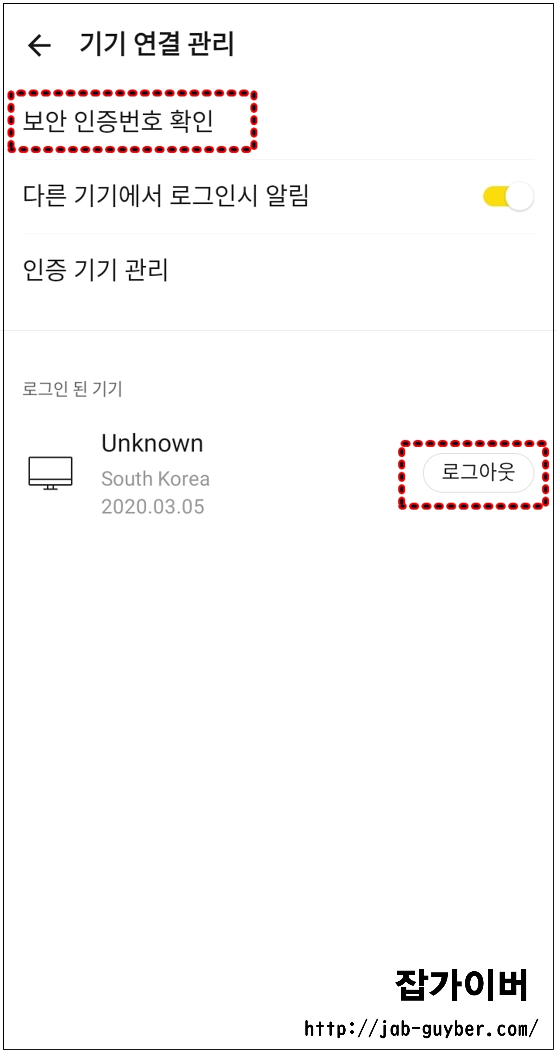 인증 기기 관리에서 알 수 없는 PC를 발견했다면, 보안을 위해 즉시 해당 기기의 인증을 해제하고 모든 기기에서 로그아웃을 권장합니다. 추가적으로 비밀번호 변경을 고려하는 것이 좋습니