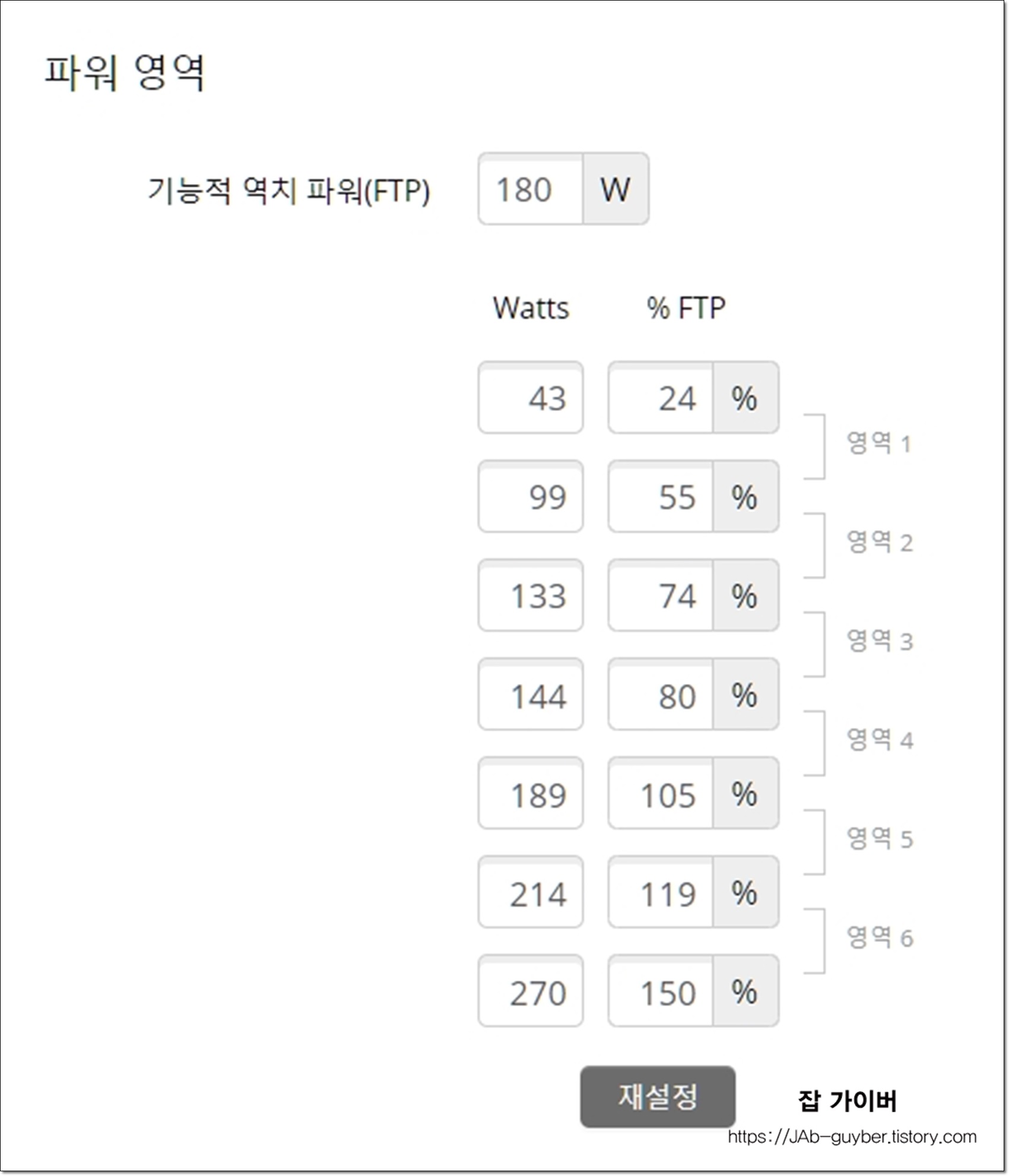 그리고 쭈욱 아래로 내리면 심박수 영역과 파워영역을 볼 수 있습니다.