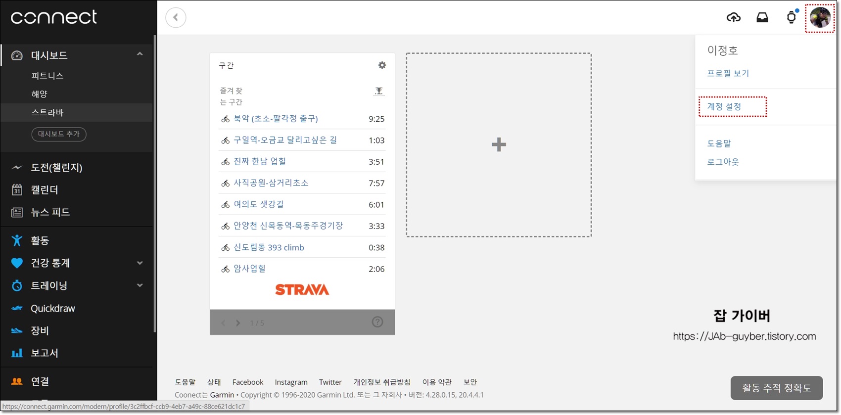 가장 먼저 가민커넥트를 실행해서 로그인합니다.