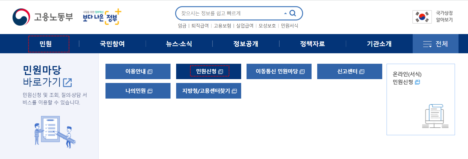 - 고용노동부 홈페이지 접속