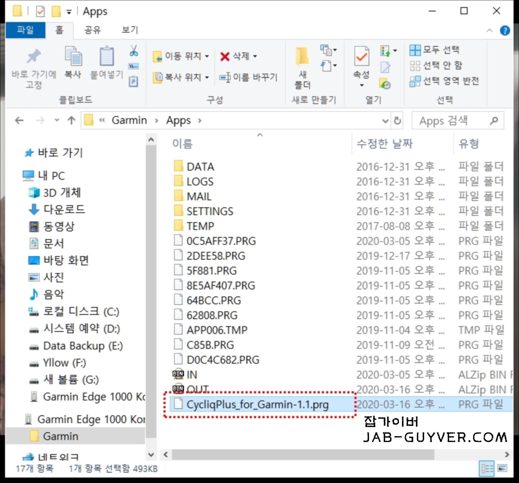 - 가민엣지 폴더 경로 ‘/Garmin/Apps’ 디렉토리에 해당 prg 파일을 넣어줍니다.