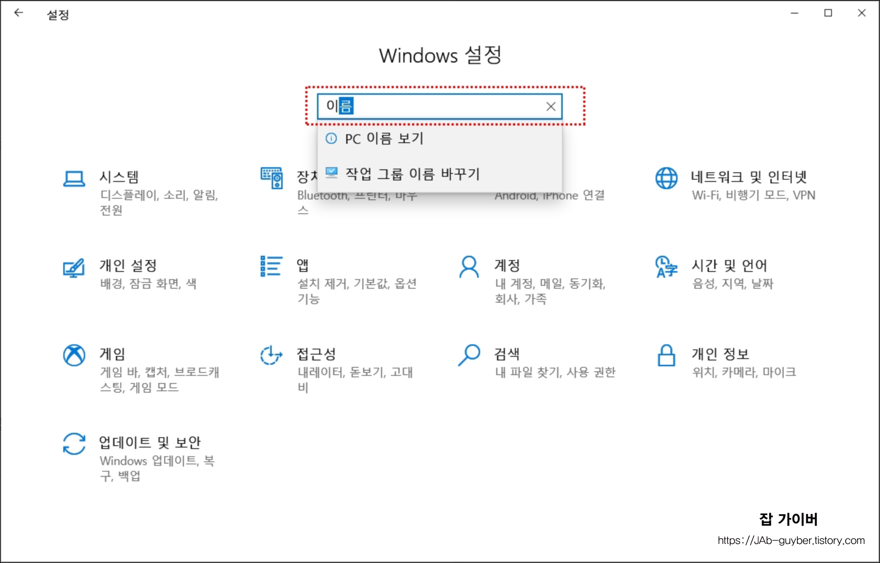 윈도우10 컴퓨터 이름 변경 계정 설정