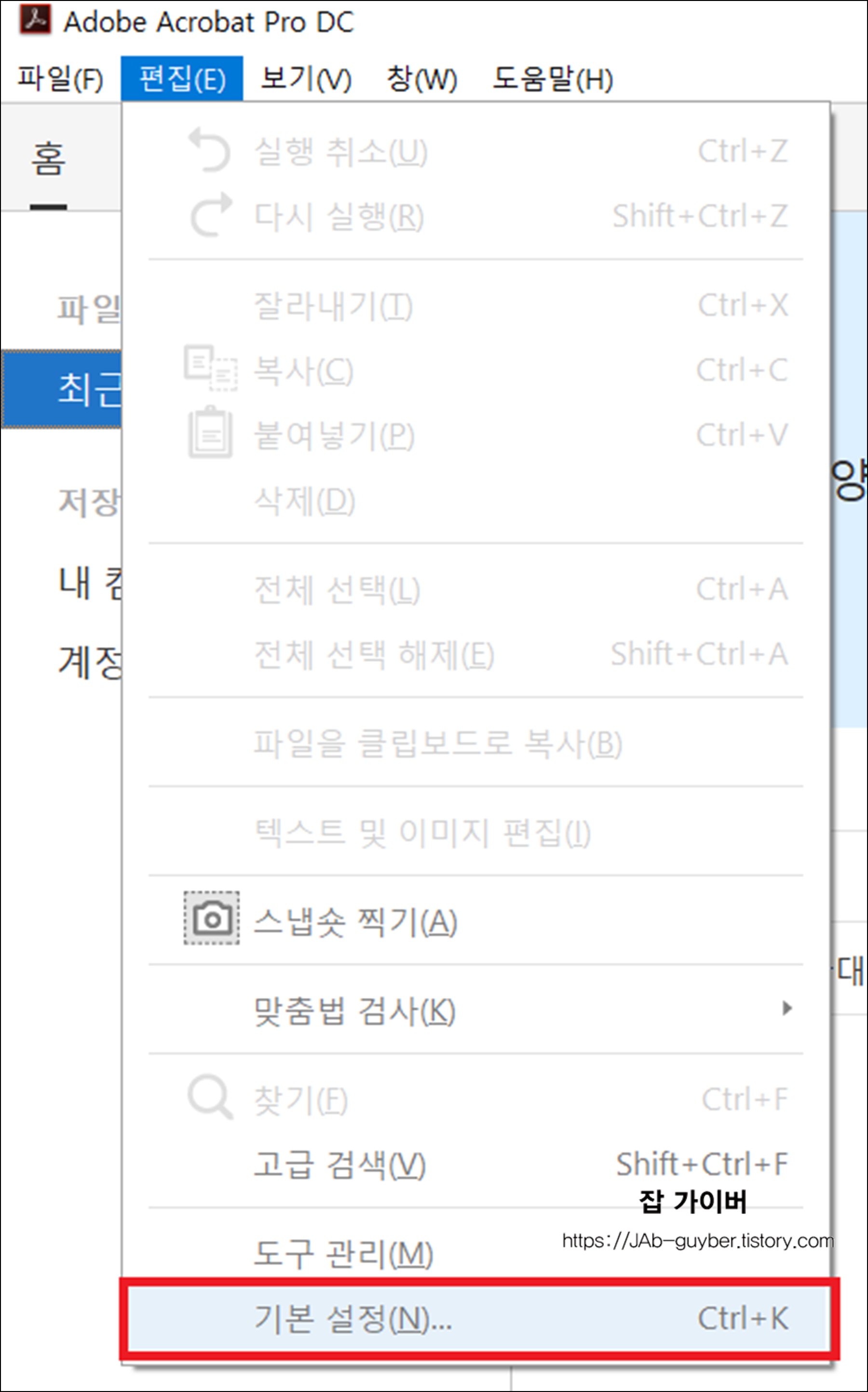 저는 Adobe Acrobat Pro DC 버전으로 진행되며 다른 버전도 크게 다르지 않습니다.