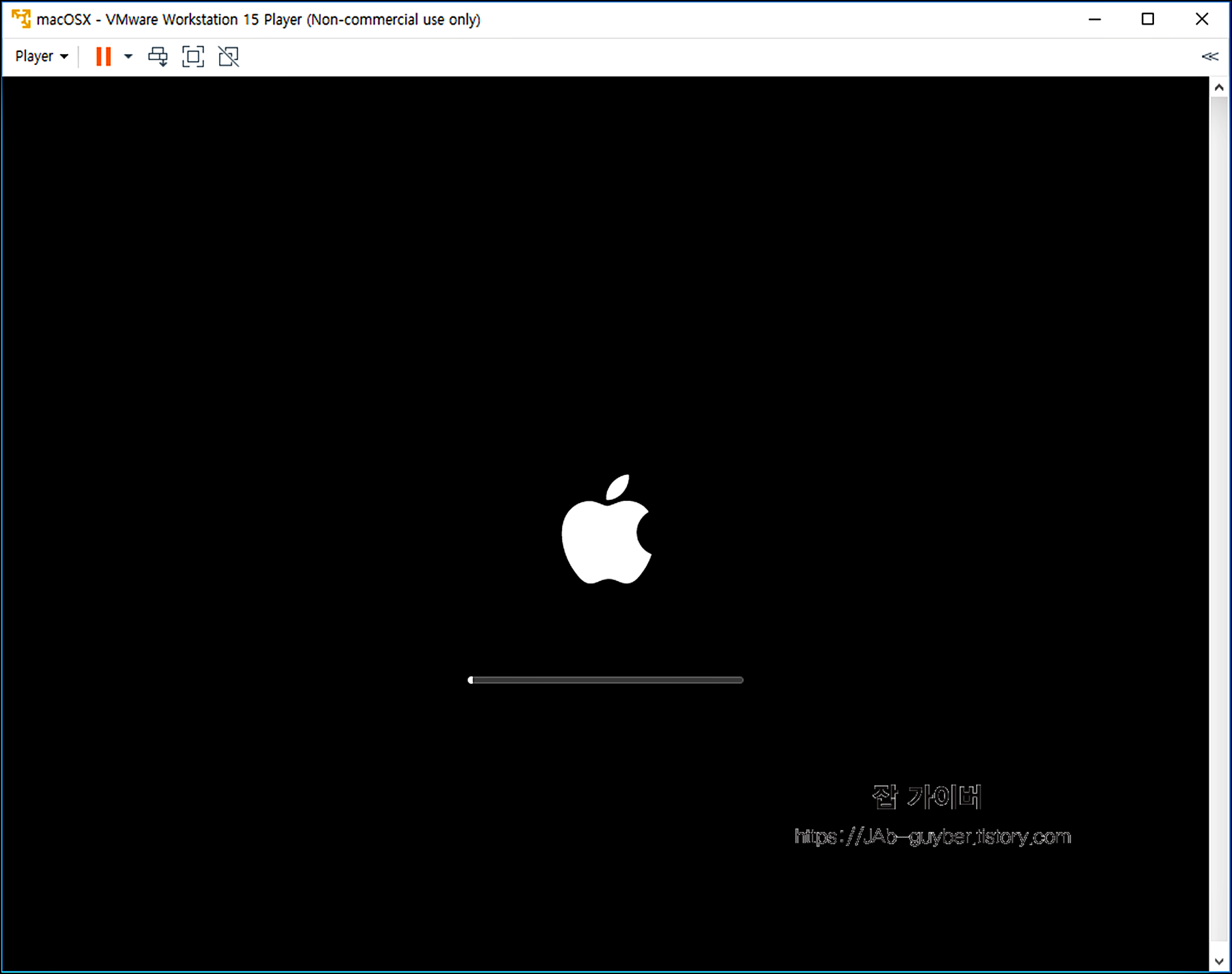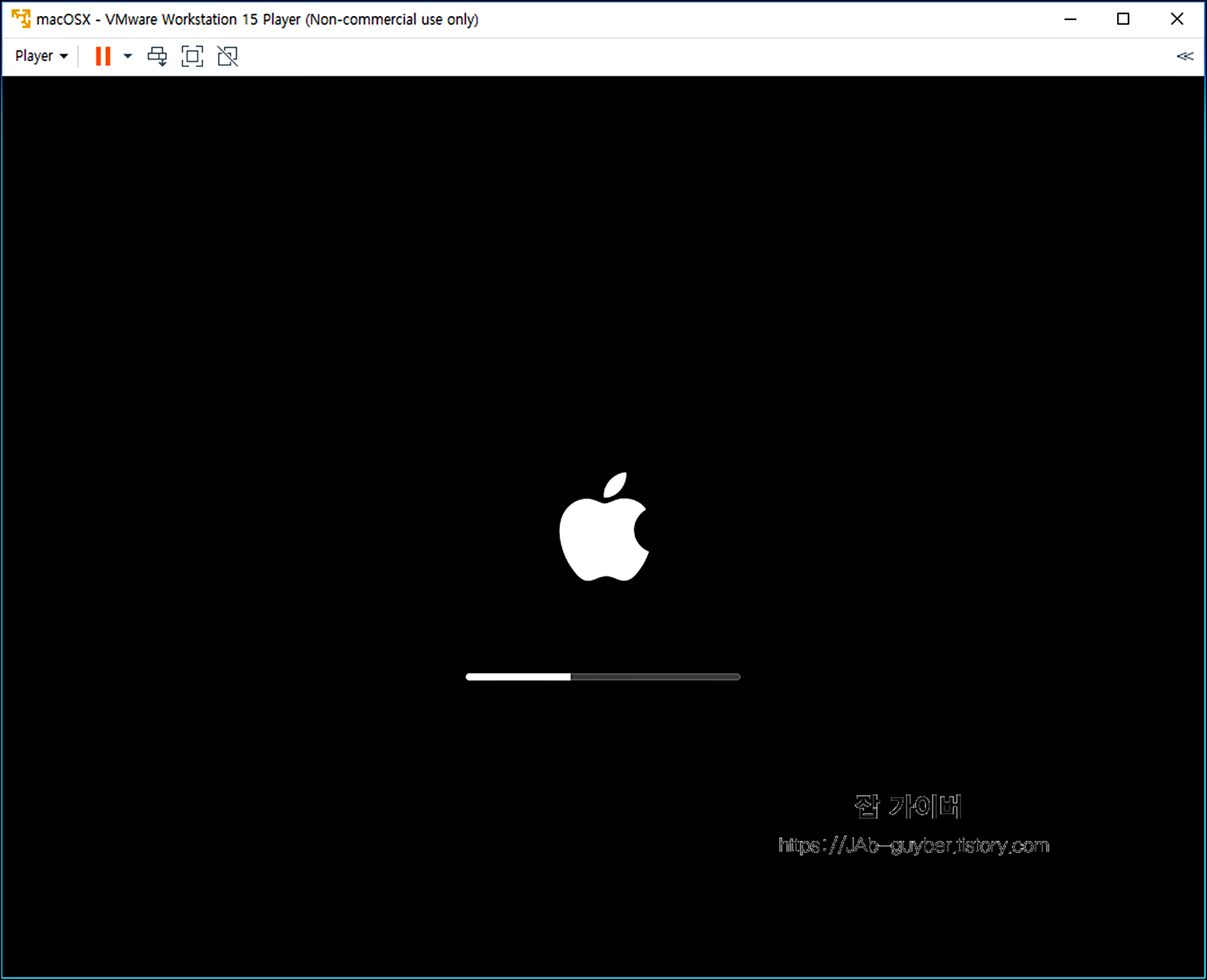 이후 초로색 플레이 버튼을 눌러주면 애플로고가 뜨면서 설치가 진행됩니다.