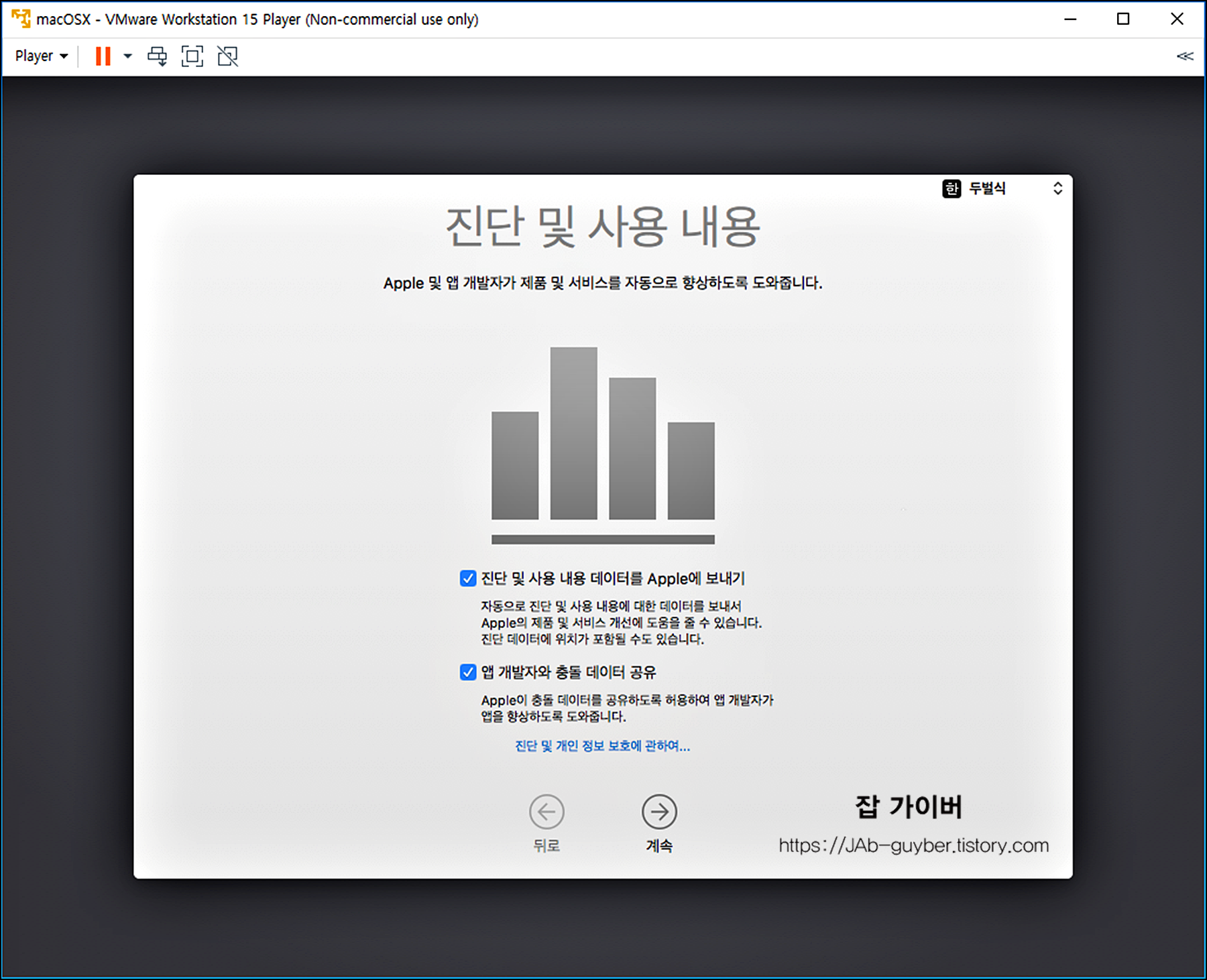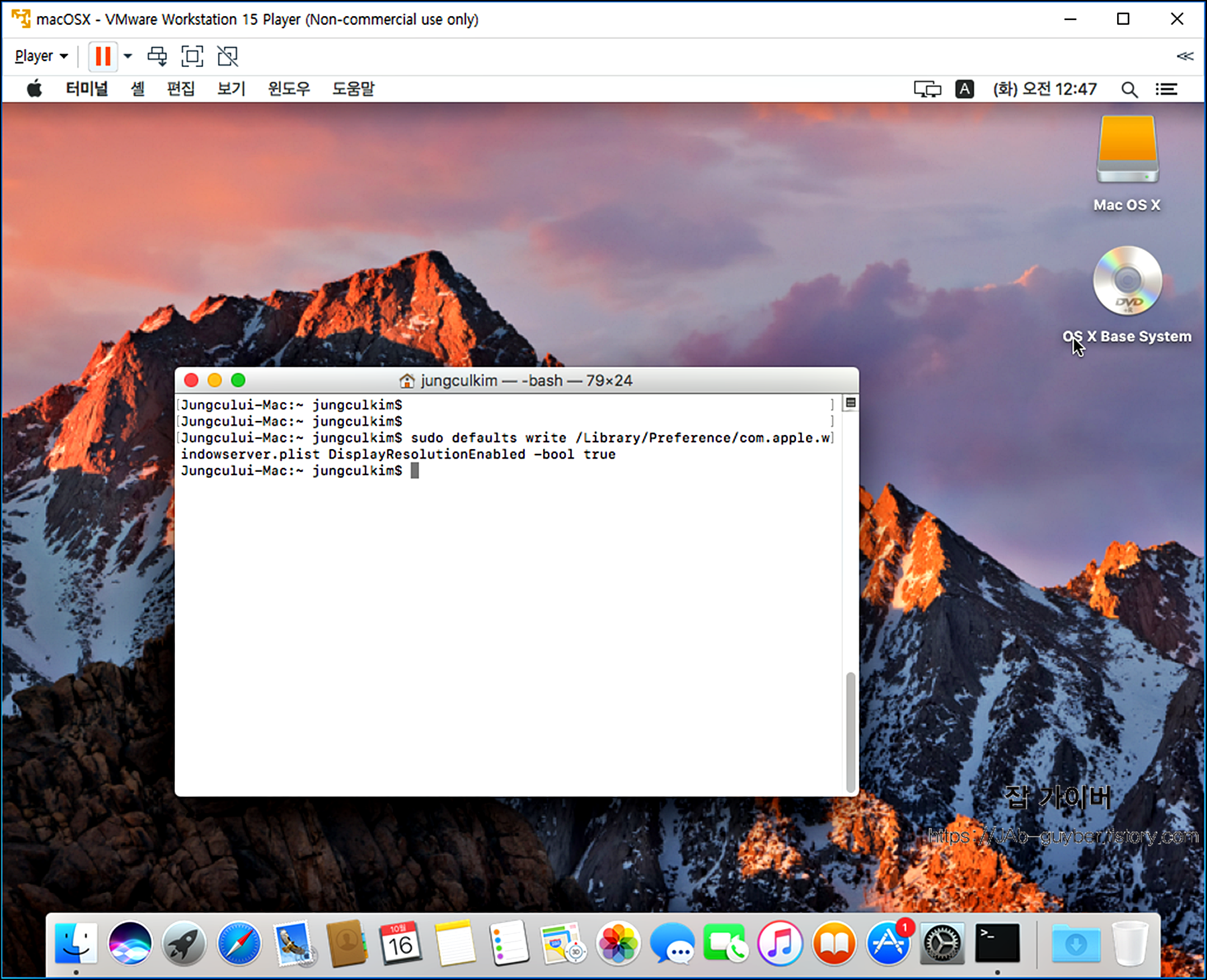 그럼 VMWare를 이용한 MacOSX가 설치가 됩니다.