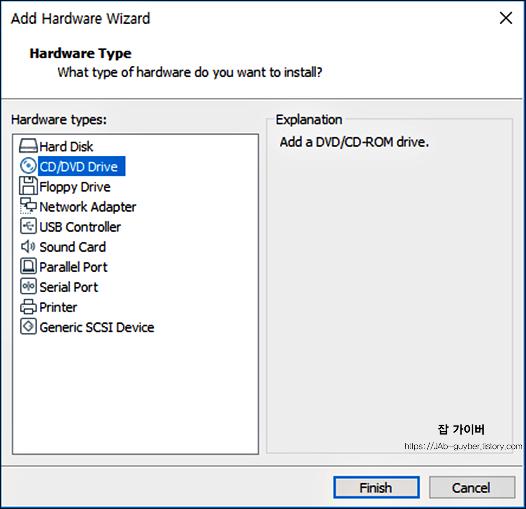 - Add 버튼을 클릭하고 CD/DVD를 선택