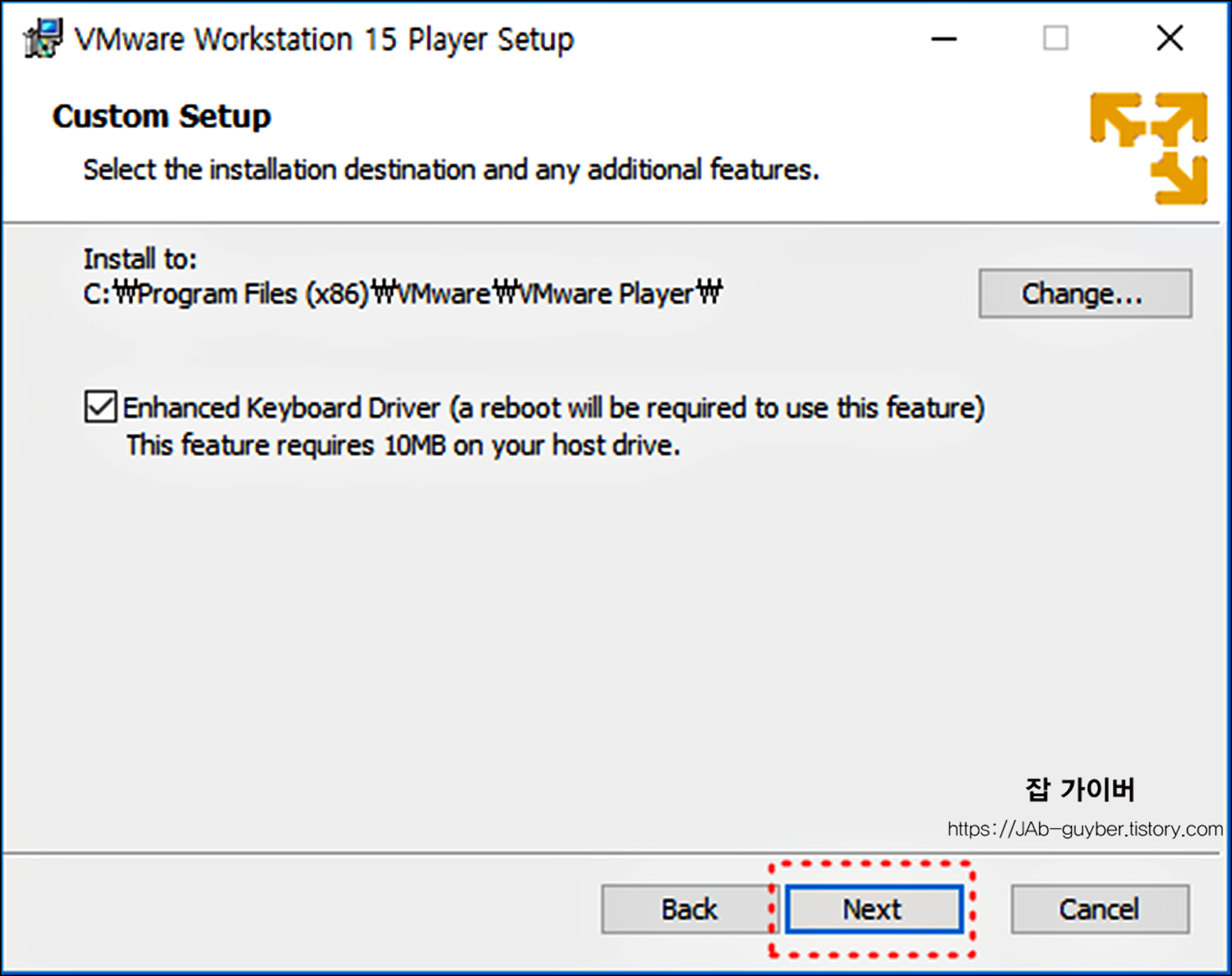 - 가상 VM을 설치할 위치를 지정하고 Next를 선택합니다.