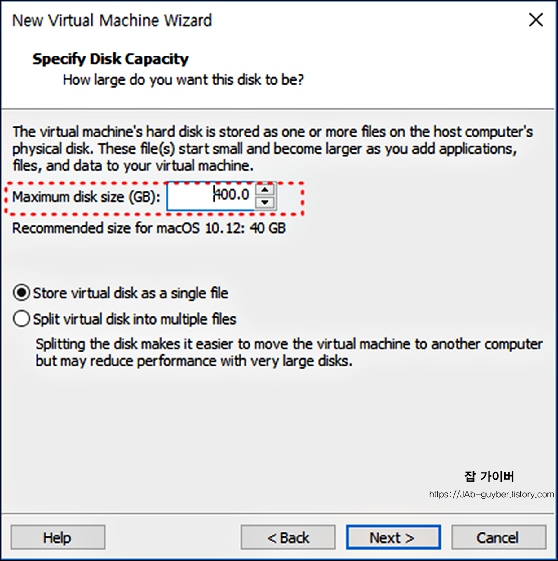 부트캠프와 동일하게 설치시 사용하고자 하는 운영체제의 할당량을 지정합니다.