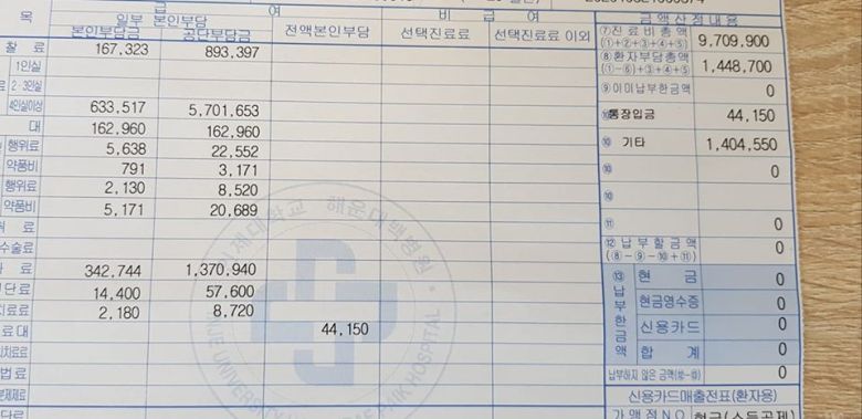 본인부담금 및 공인부담금으로 나라에서 대부분 지원을 해주고 본인 부담금은 총 4만4천150원