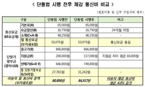 아래 <기기 변경 관련 단통법>에 있는 설명과 상통합니다.