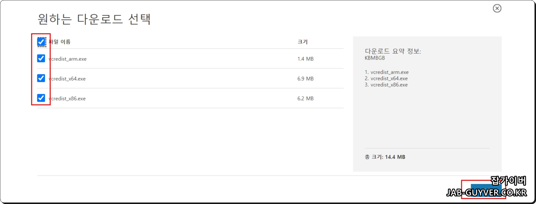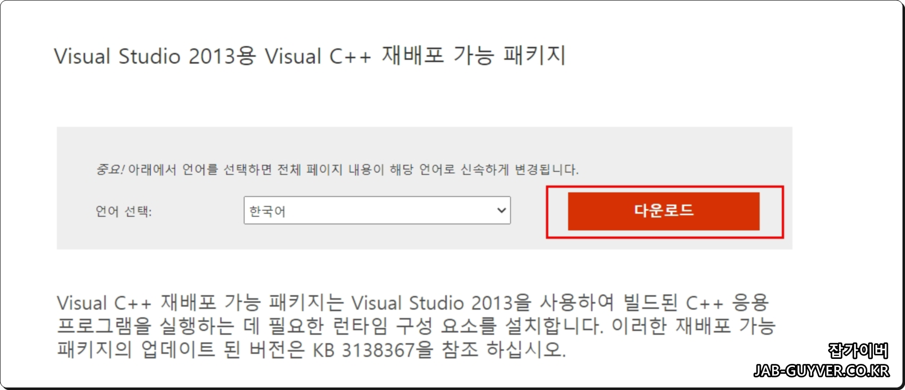 Visual Studio 2013용 Visual C++ 재배포 가능패키지를 다운로드 받습니다.