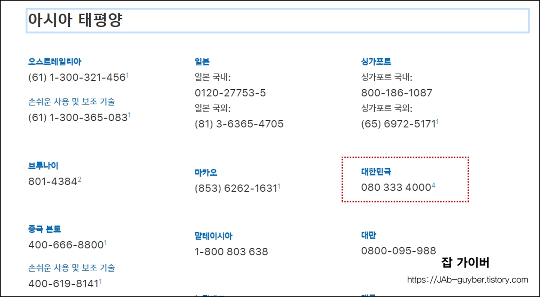 그럼 현재 오스트레일리아와 이볼 싱가포르,브루나이,마카오,대한민국,중국본토,말레이시아,대만등등의 전화번호를 확인할 수 있으며 한국의 경우 고객센터 전화번호는 : 080 - 3333 - 4000 입니다.