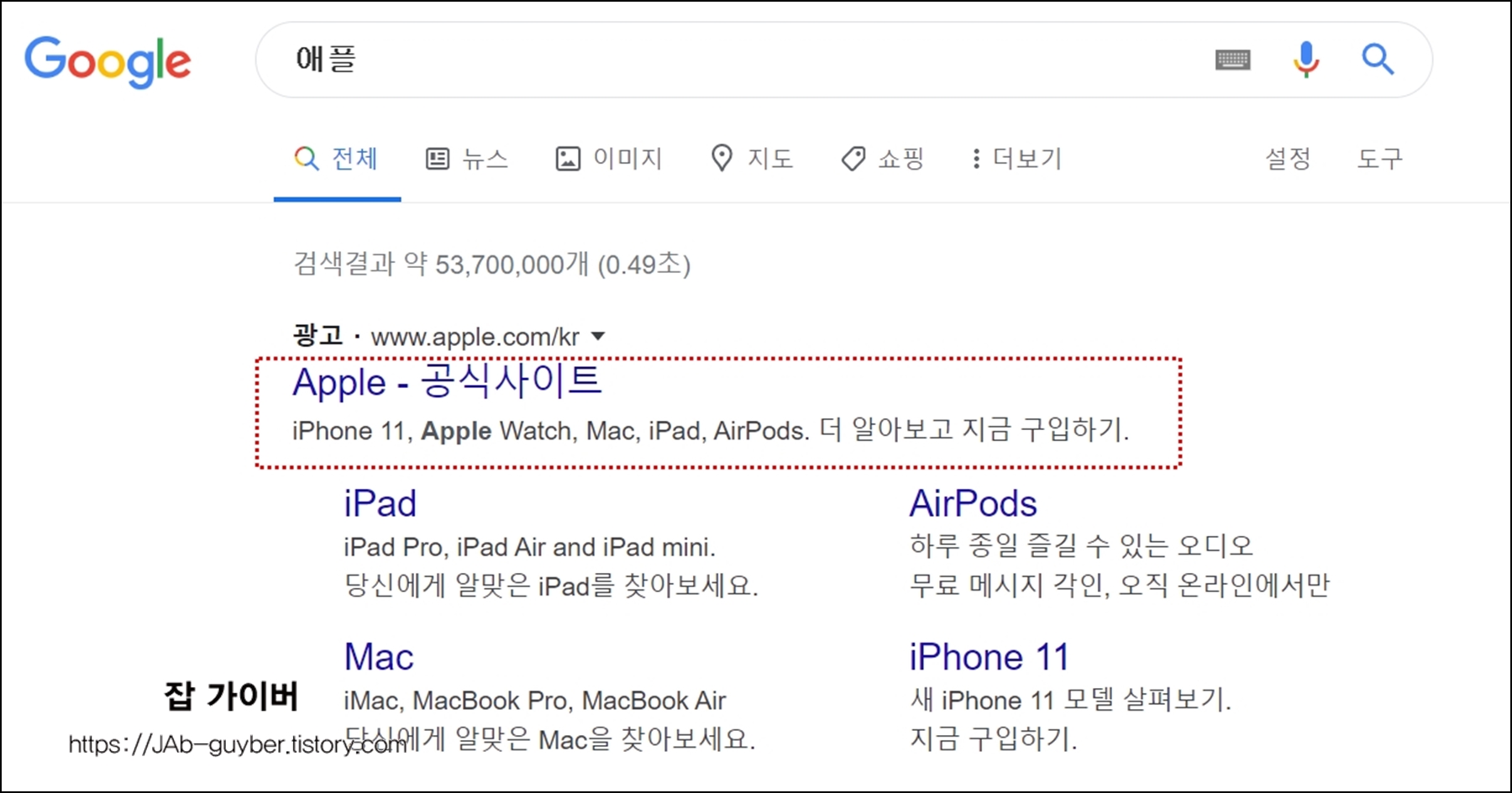 구글에서 애플로 검색해서 Apple - 공식사이트로 접속합니다.