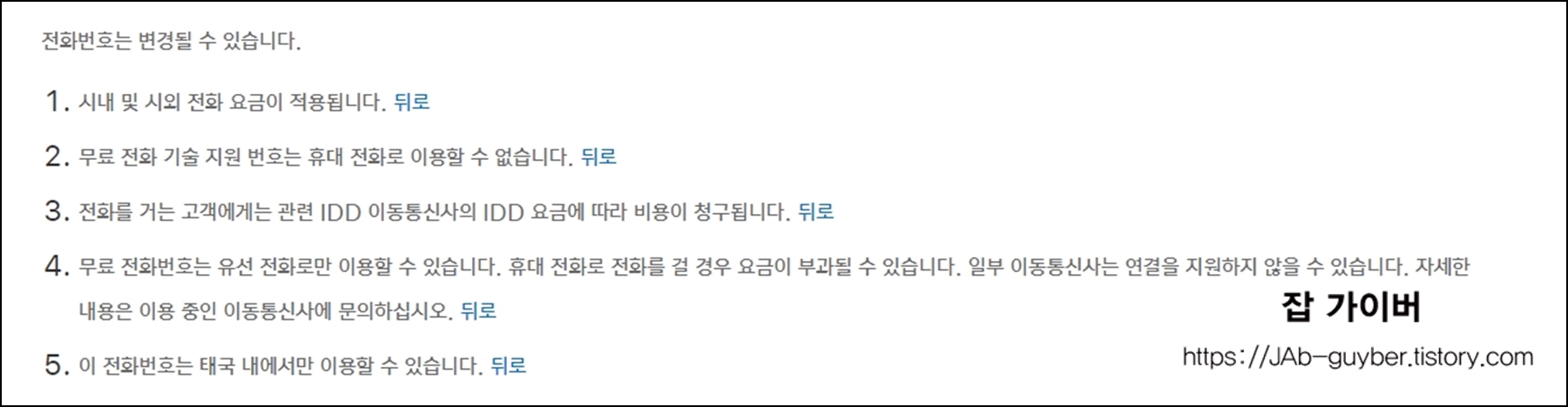 - 이 전화번호는 태국 내에서만 이용할 수 있습니다.