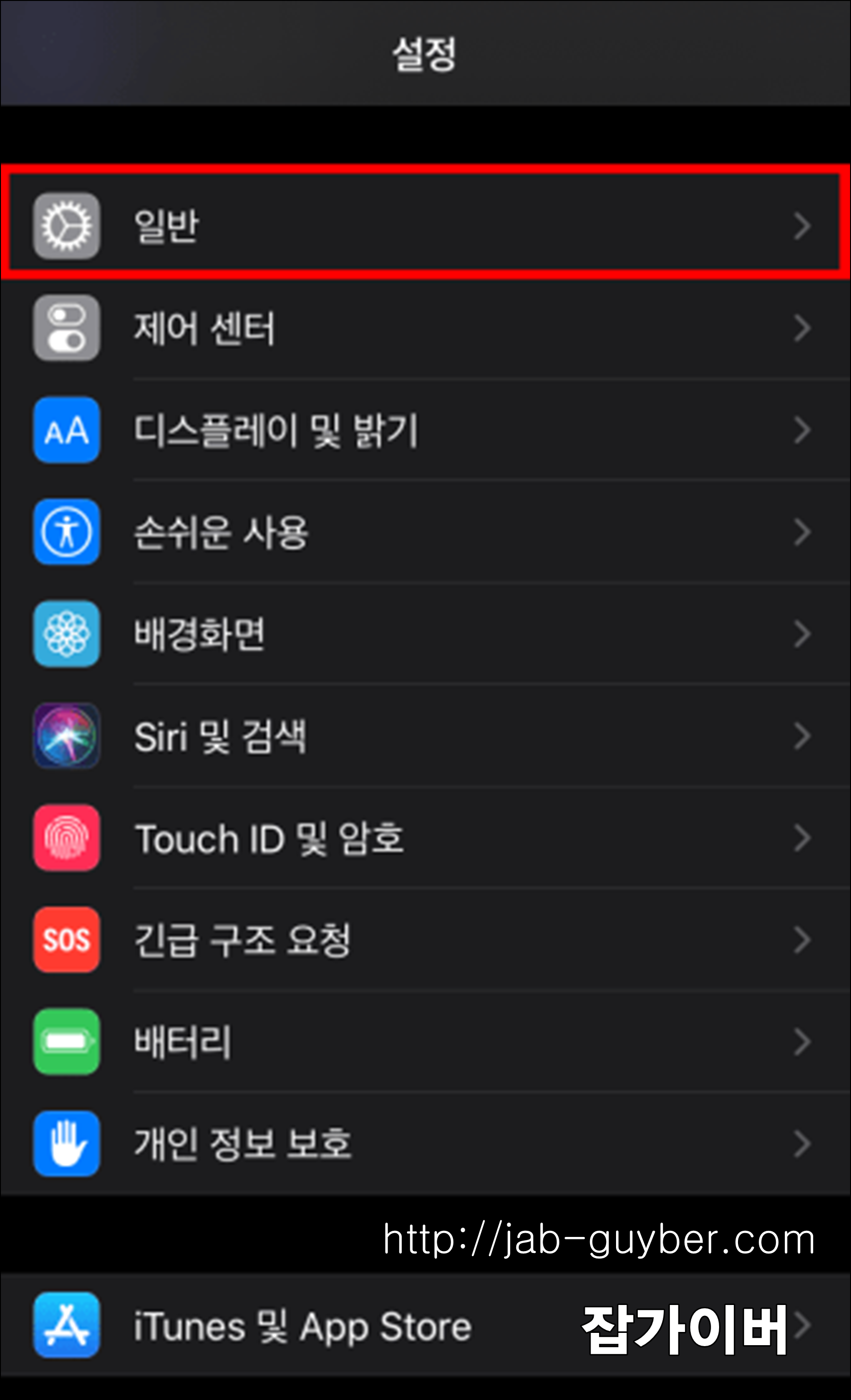 제일 상단에 있는 "일반"탭을 선택 후 "정보"탭을 선택하게 되면 아이폰의 다양한 정보를 확인할 수 있습니다.