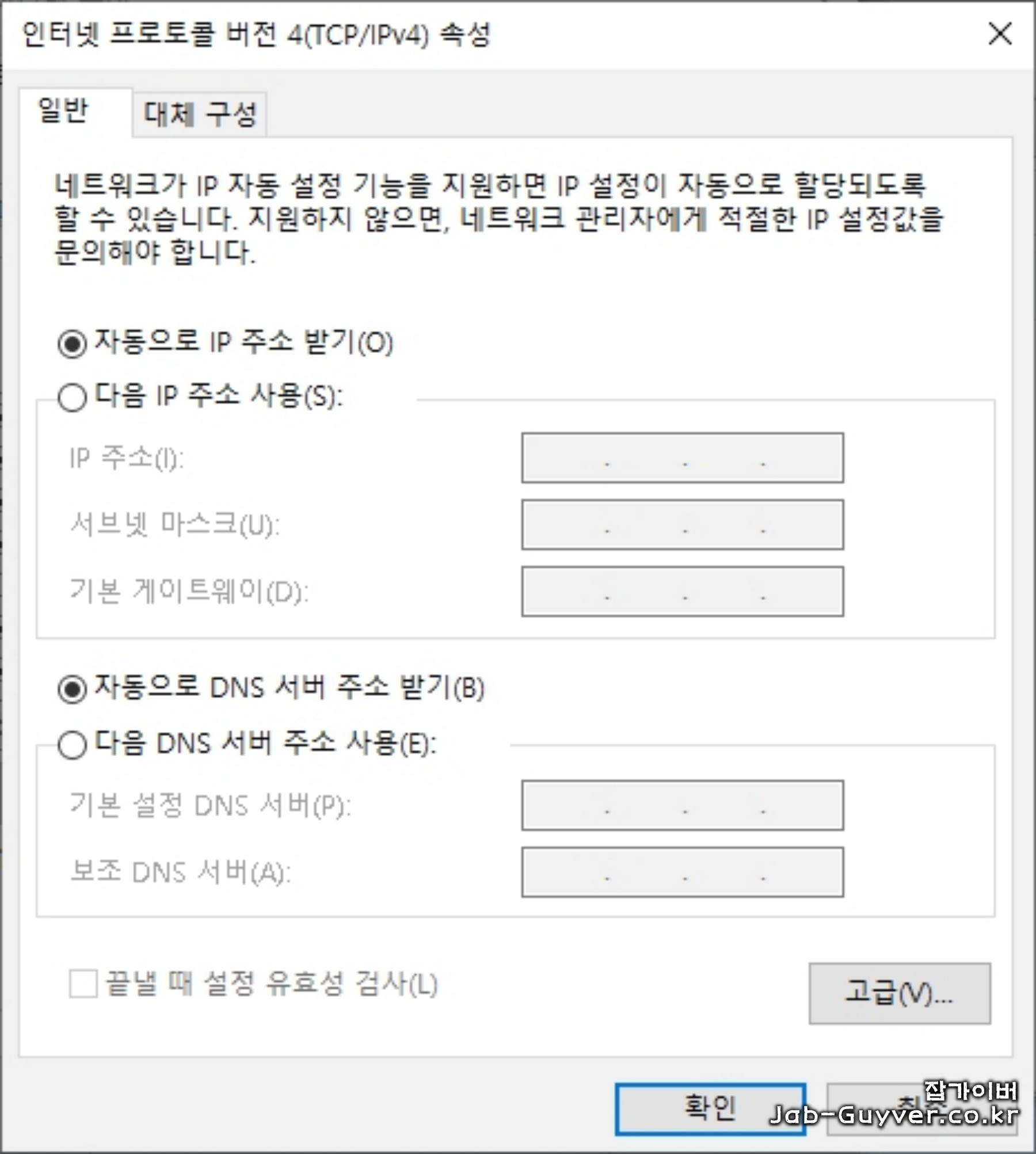 "자동으로 IP 주소 받기" 대신 "다음 IP 주소 사용"을 선택합니다.