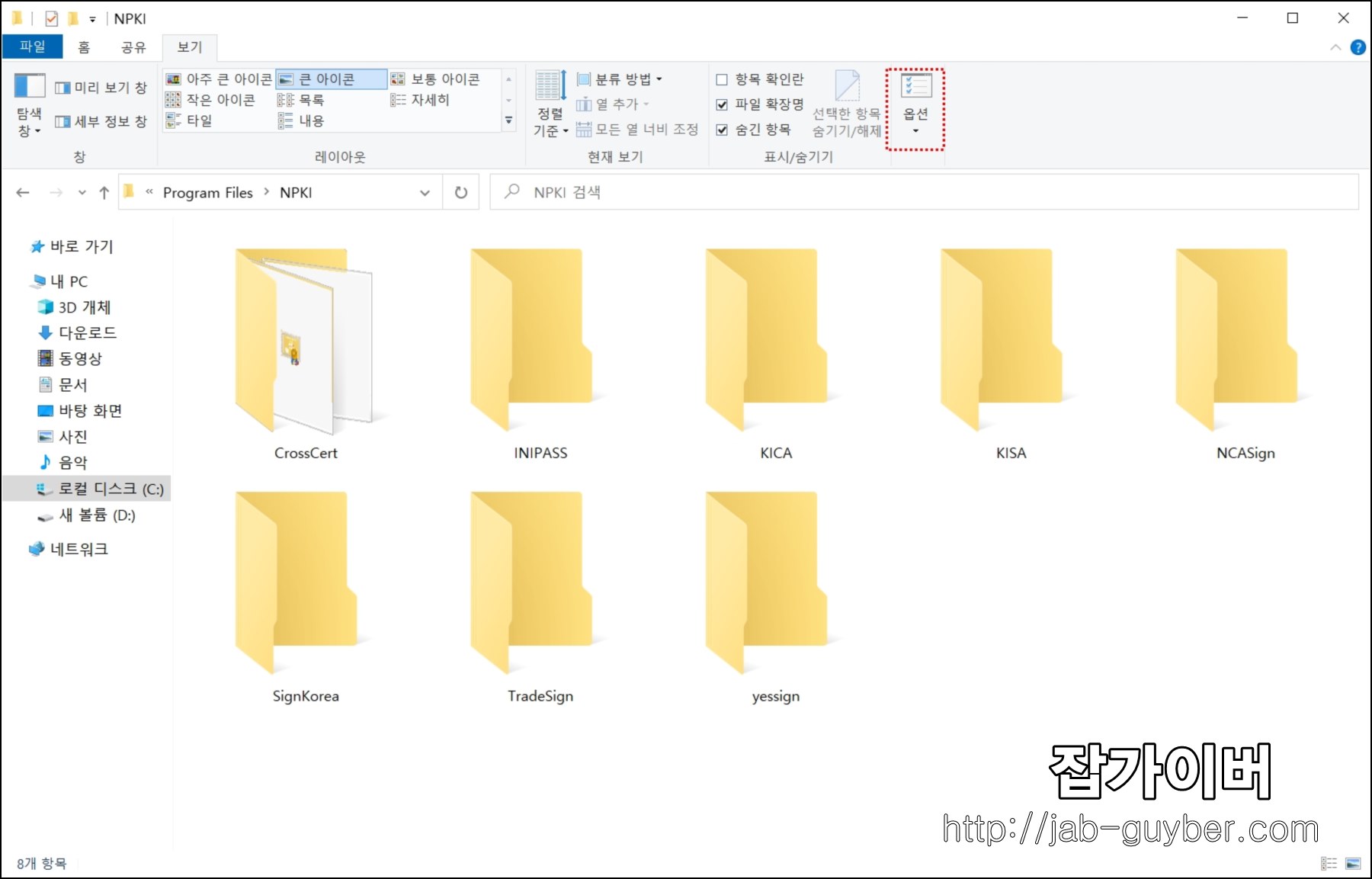 상단 보기탭 선택 -> 옵션을 선택합니다.